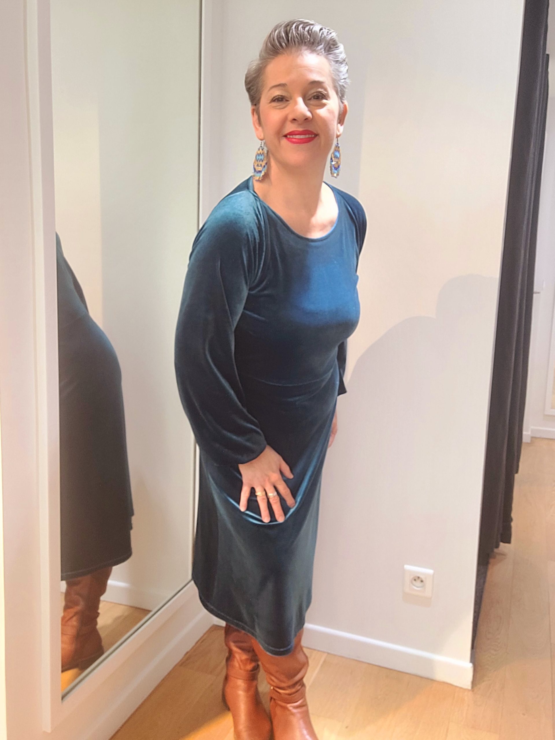 Une robe féminine et très confortable qui s’adapte à toutes les morphologies Un sublime velours Haute Couture et Eco-Responsable soyeux, doux même sur l’envers Une encolure arrondie facile à porter Un buste près du corps avec deux pinces poitrine et deux pinces dos De l’élasthanne pour plus de confort une robe qui épouse les hanches […]