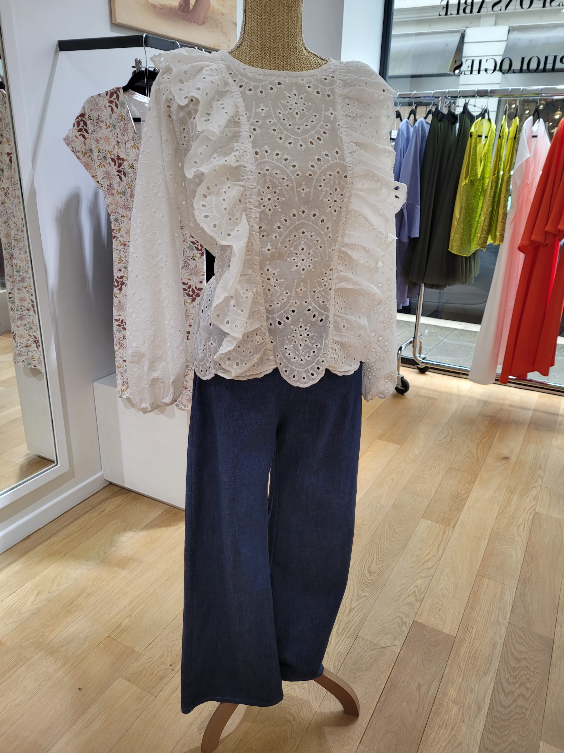 - De très beaux volants festonnés, de même que le bas de la blouse