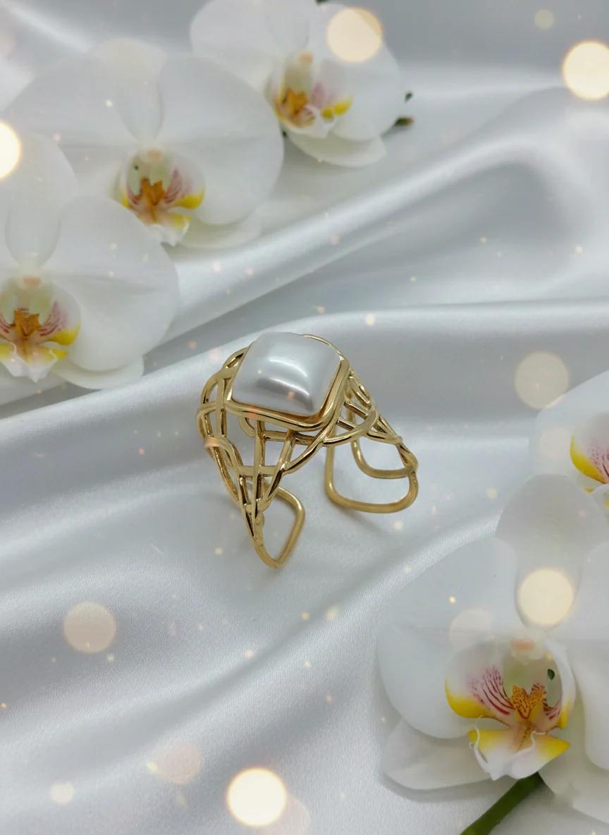 Bague Agatha – Perle Blanche Losange Élégante