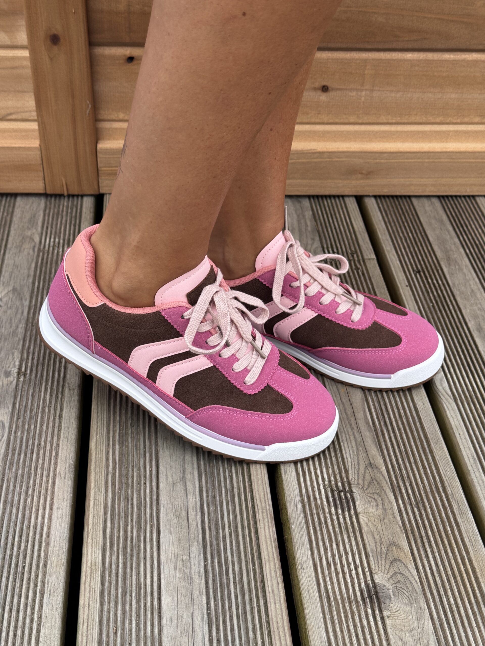 Baskets MOSCOW Basket Coloris : Rose & marron Lacet Semelle épaisse blanche Disponible du 36 au 41 Prendre sa taille habituelle