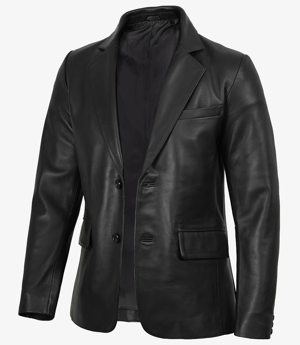 Blazer en cuir noir à deux boutons pour homme – Revers cranté
