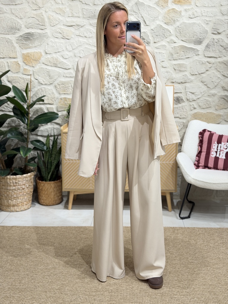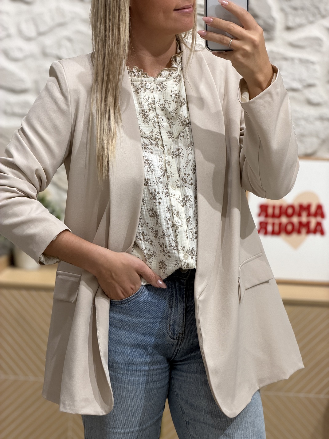Blazer ISIS – BEIGE (Made in Italie) Veste blazer Couleur : beige Coupe droite Manches longues Deux fausses poches Doublée Taille unique peut convenir du 36/S au 42/XL Longueur = 74 cm Largeur = 50 cm Composition = 96% polyester, 4% élasthanne Le modèle porte habituellement du S et mesure 1m65 Accessoires portés par le mannequin : Pantalon POSÉIDON Beige, Blouse TAUPY