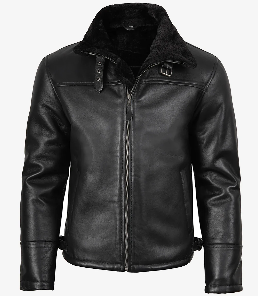 Blouson aviateur B3 en cuir et peau lainée noire pour homme