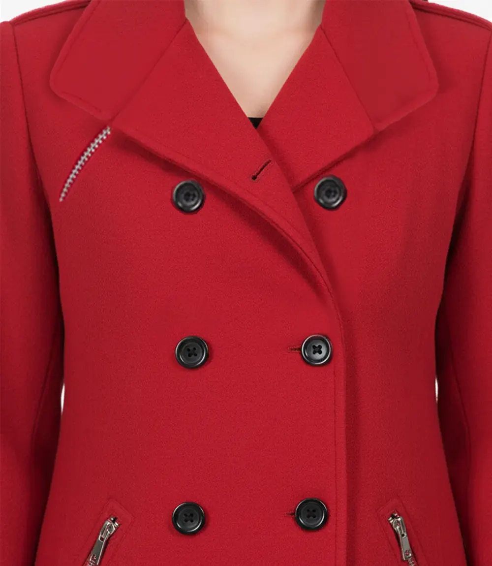 Découvrez le mélange de design classique et de style contemporain avec ce caban en laine rouge, parfait pour les femmes qui recherchent à la fois style et chaleur.