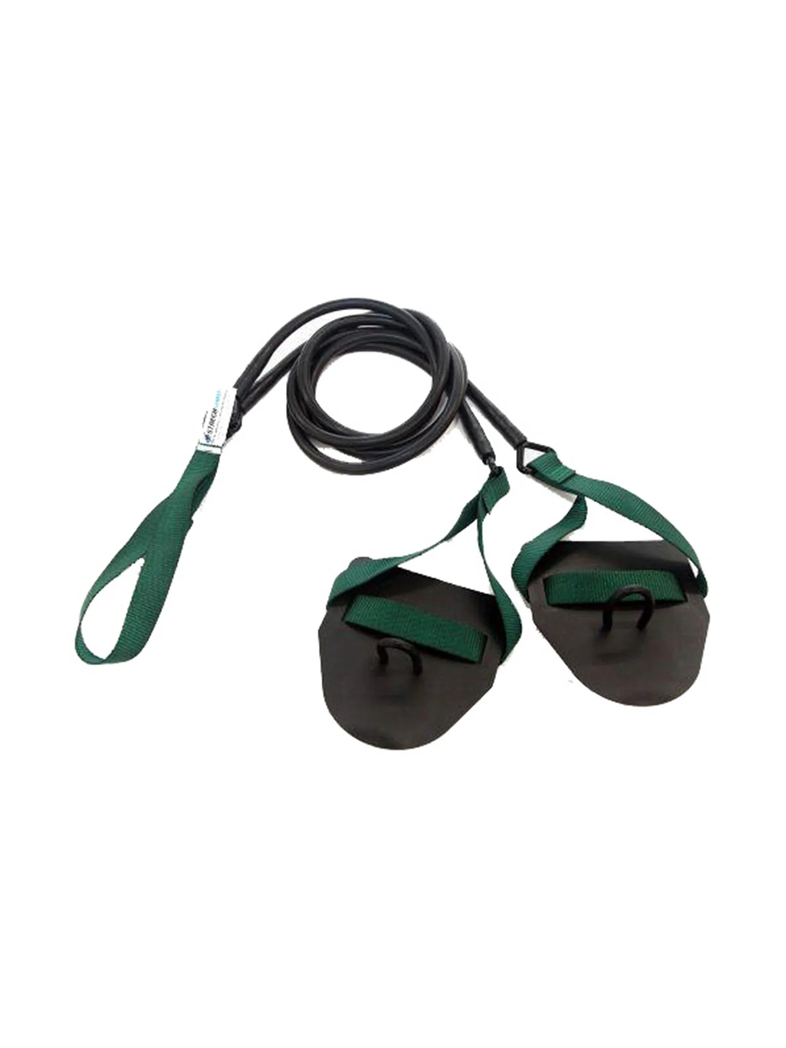 Conçus pour améliorer la phase de traction, l’endurance et la force musculaire, les câbles élastiques de natation StrechCordz avec plaquettes permettent de simuler l’appui de la main dans l’eau. L’ensemble StrechCordz comprend 2 tubes (câbles) élastiques de 4 pieds avec plaquettes et bride. Les câbles élastiques de natation sont ajustables : cinq niveaux de résistance sont offerts. Chacun correspond à une couleur : argent offrant la résistance minimale – bleu, la résistance maximale.