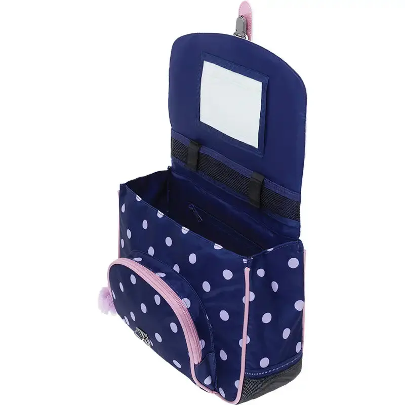 Le Cartable Tann’s « Romy » est spécialement conçu pour les **jeunes filles en CP**, offrant **une touche de fantaisie et une ergonomie optimisée**. Son **bleu marine à pois**, ses **pompons colorés en tulle** et ses **détails raffinés** apportent une note élégante et ludique.