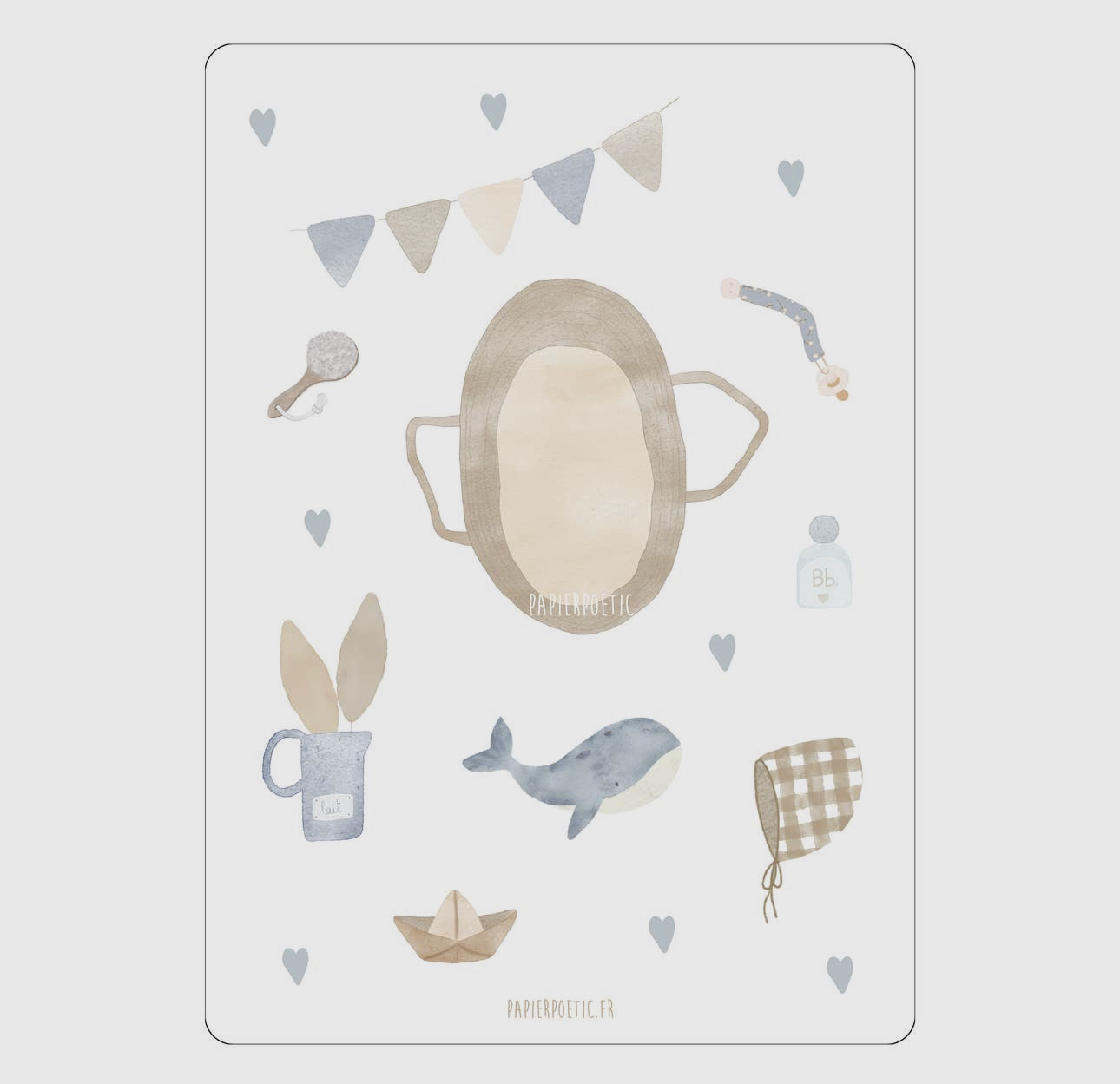Une carte pour un petit baby chéri ! Impression format A6, coins arrondis, sur papier texturé aquarelle 300g Livrée avec enveloppe recyclée kraft et pochette transparente