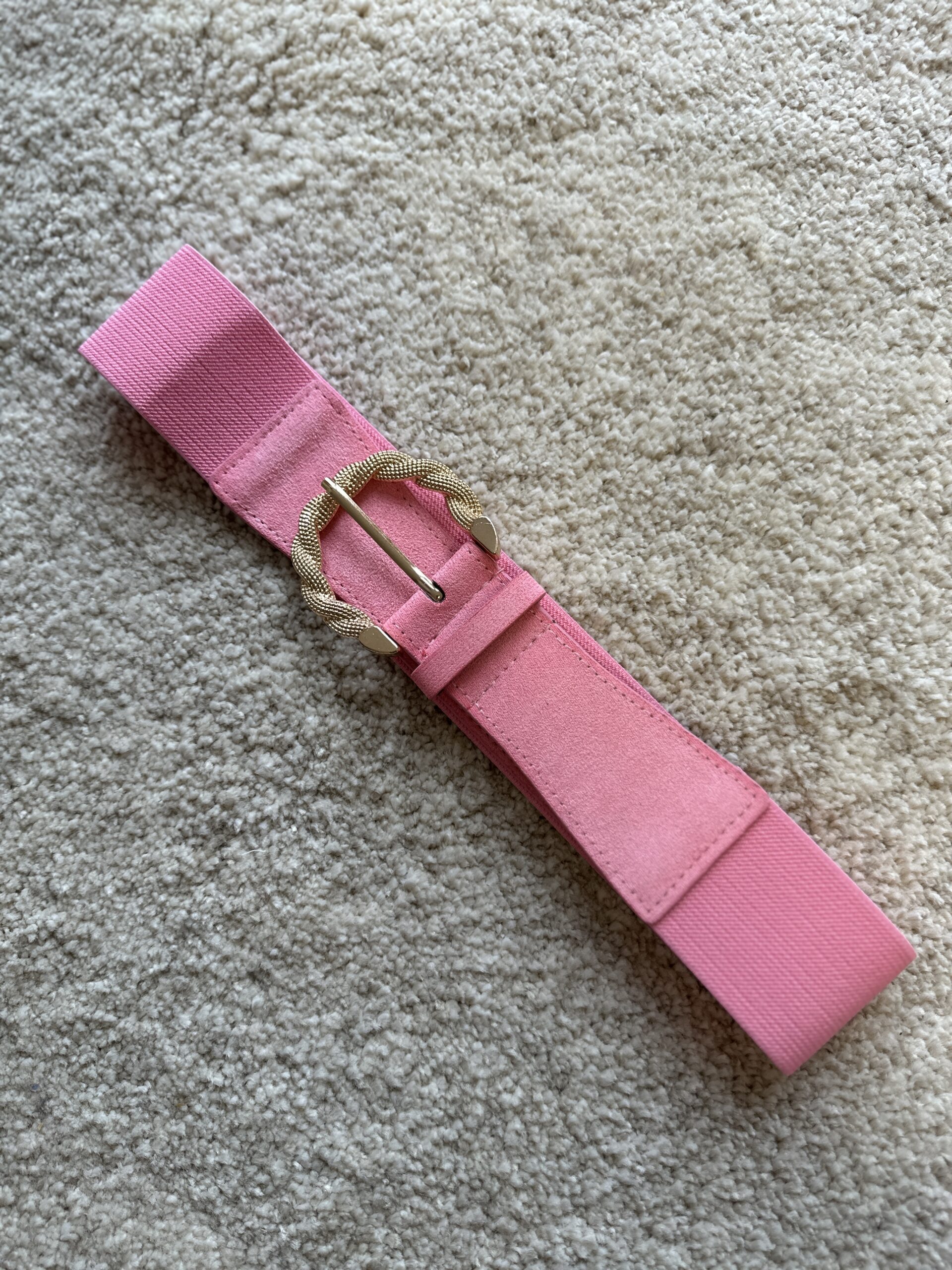 CEINTURE N*22 Rose Boucle dorée Couleur : Rose Extensible jusqu’à 110cm Largueur : 5 cm Taille boucle : 7 cm