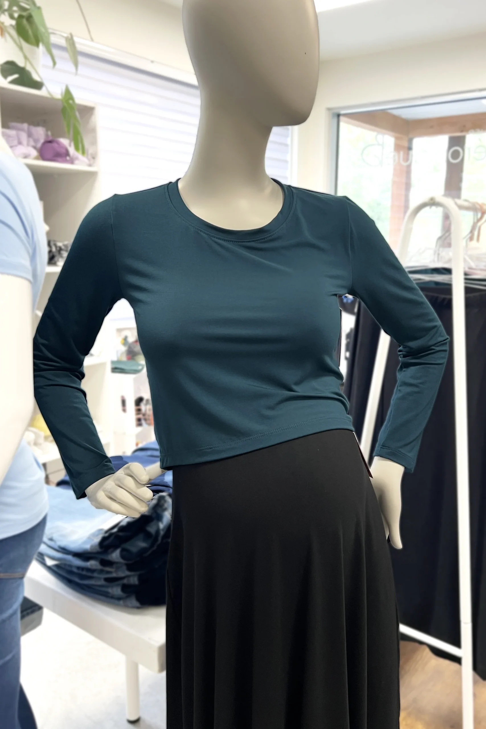 Découvrez notre chandail crop à manches longues en rayonne de bambou, un essentiel polyvalent pour votre garde-robe. Ce haut, conçu pour allier confort et style, se distingue par sa douceur exceptionnelle et sa coupe flatteuse.