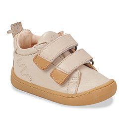 Ces baskets montantes en cuir végétal offrent un excellent maintien, idéal pour les premiers pas. Grâce à leur fermeture à scratch, elles s’enfilent facilement et s’ajustent parfaitement au pied de bébé, encourageant son autonomie. La semelle souple en caoutchouc naturel accompagne chaque mouvement en toute sécurité, tout en respectant la croissance du pied.