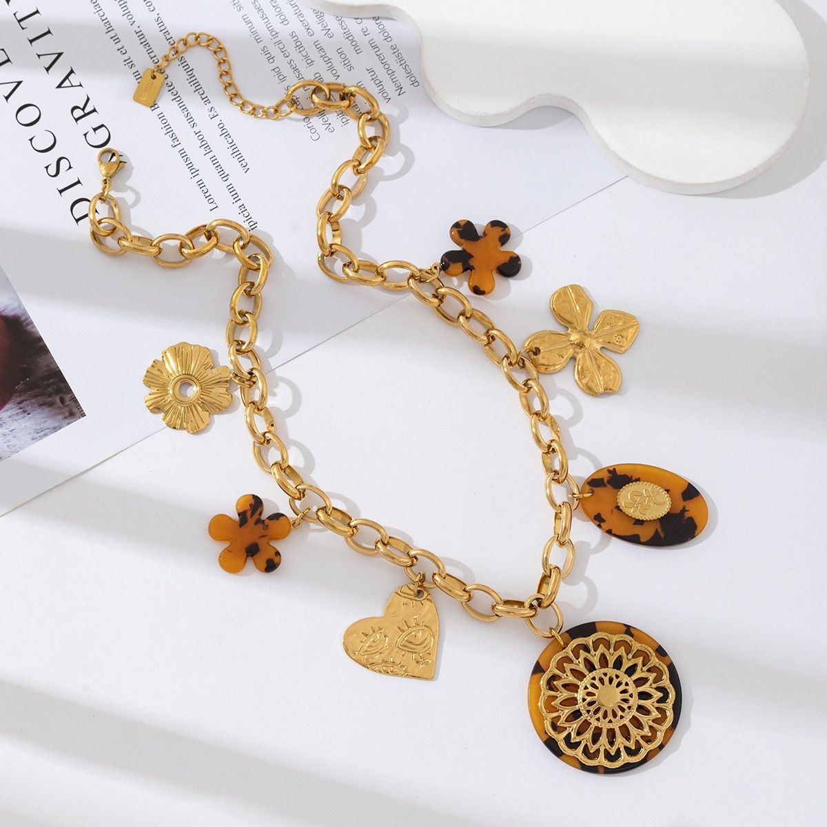 Collier N*58 Collier Coloris : or, noir, & camel Fantaisie Acier inoxydable