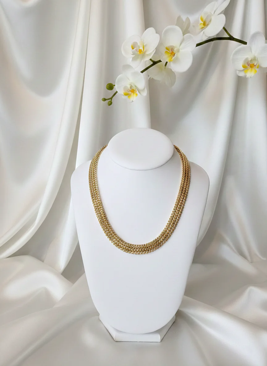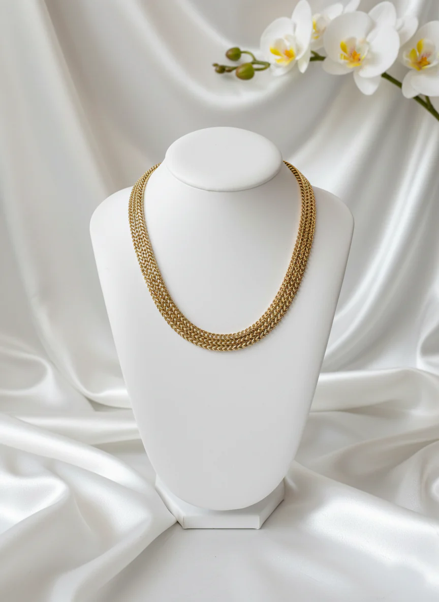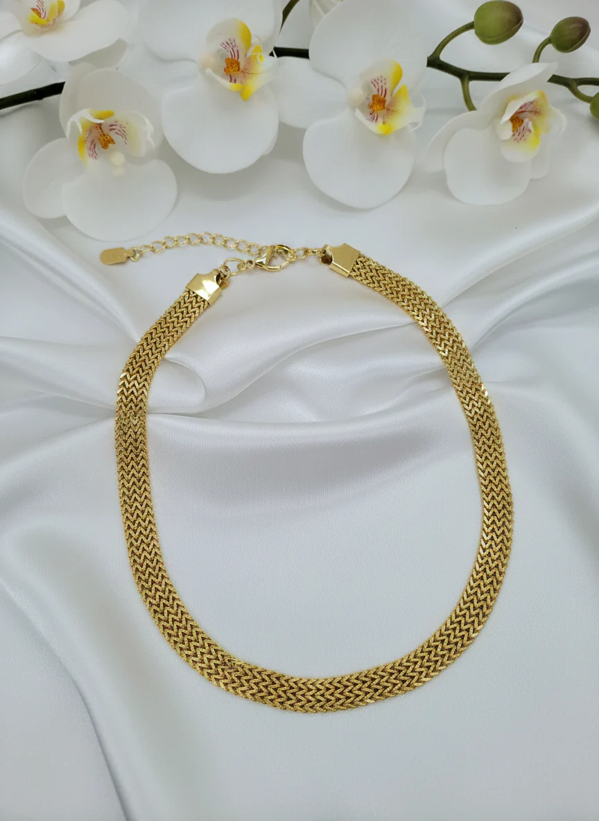 Design intemporel avec maille gourmette qui apporte une touche de sophistication moderne. La finition dorée sublime ce classique de la bijouterie.