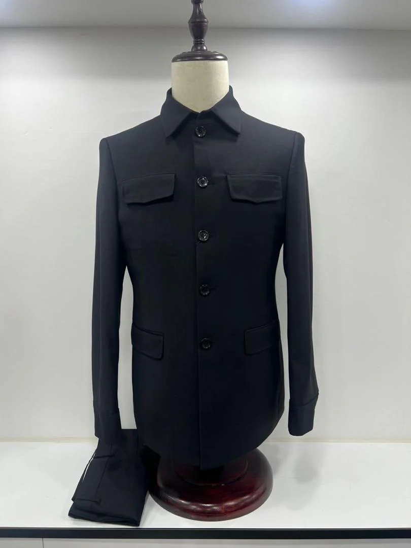 Ce costume homme bleu marine style Mao combine élégance et modernité pour un look unique. Fabriqué avec des matériaux de haute qualité, ce costume offrira un ajustement parfait et un confort optimal. Parfait pour les occasions formelles et professionnelles, ce costume ajoutera une touche de sophistication à votre garde-robe.