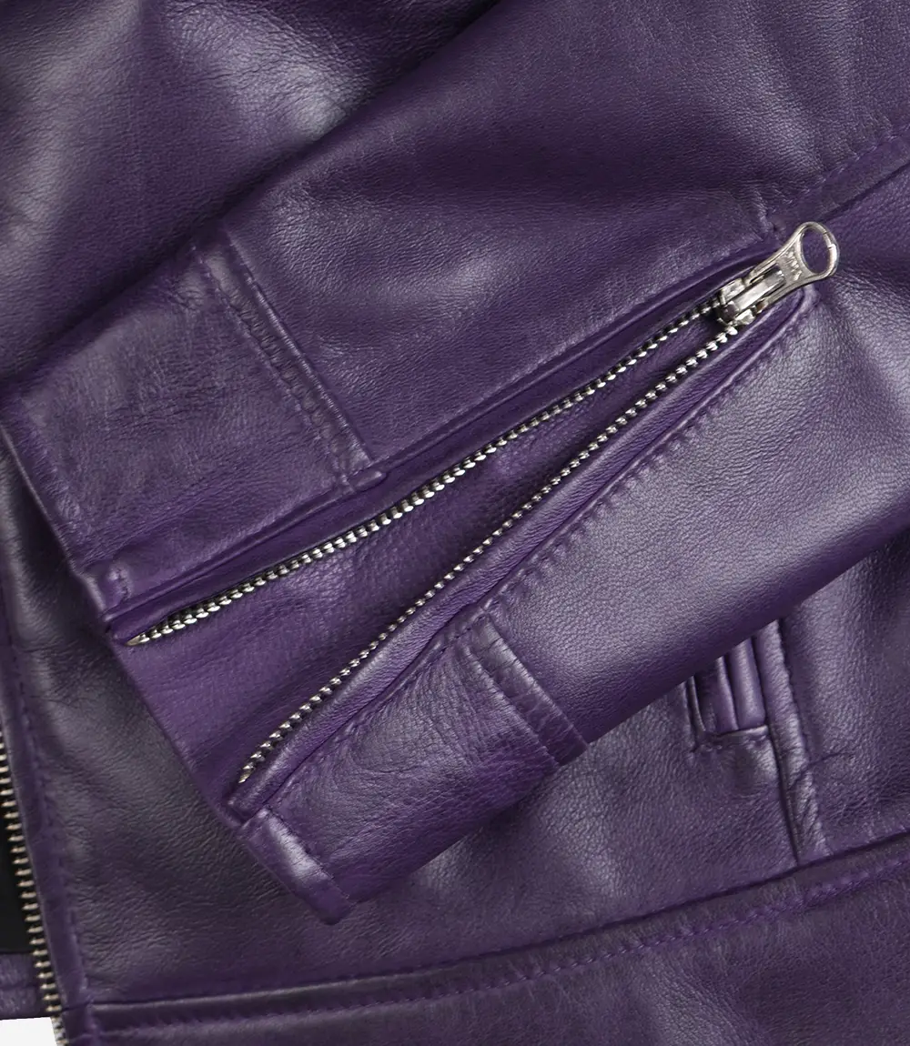 Veste en cuir style motard violet Rachel pour femme