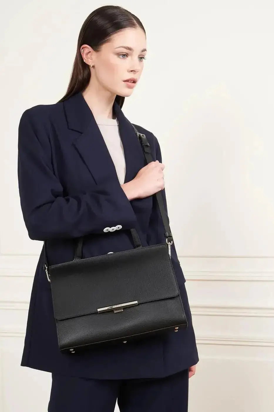 Le sac porté main Lancaster Sierra est un grand sac à main intemporel et élégant en cuir de vachette haut de gamme. Son design minimaliste et son compartiment spacieux intérieur, équipé d’une poche zippée pour protéger vos effets personnels, en font un choix luxueux. Son rabat à bouton pression et sa poche extérieure zippée ajoutent la touche finale à cet accessoire sophistiqué. Vous pouvez le porter à l’épaule ou en bandoulière, grâce à sa sangle amovible et réglable.
