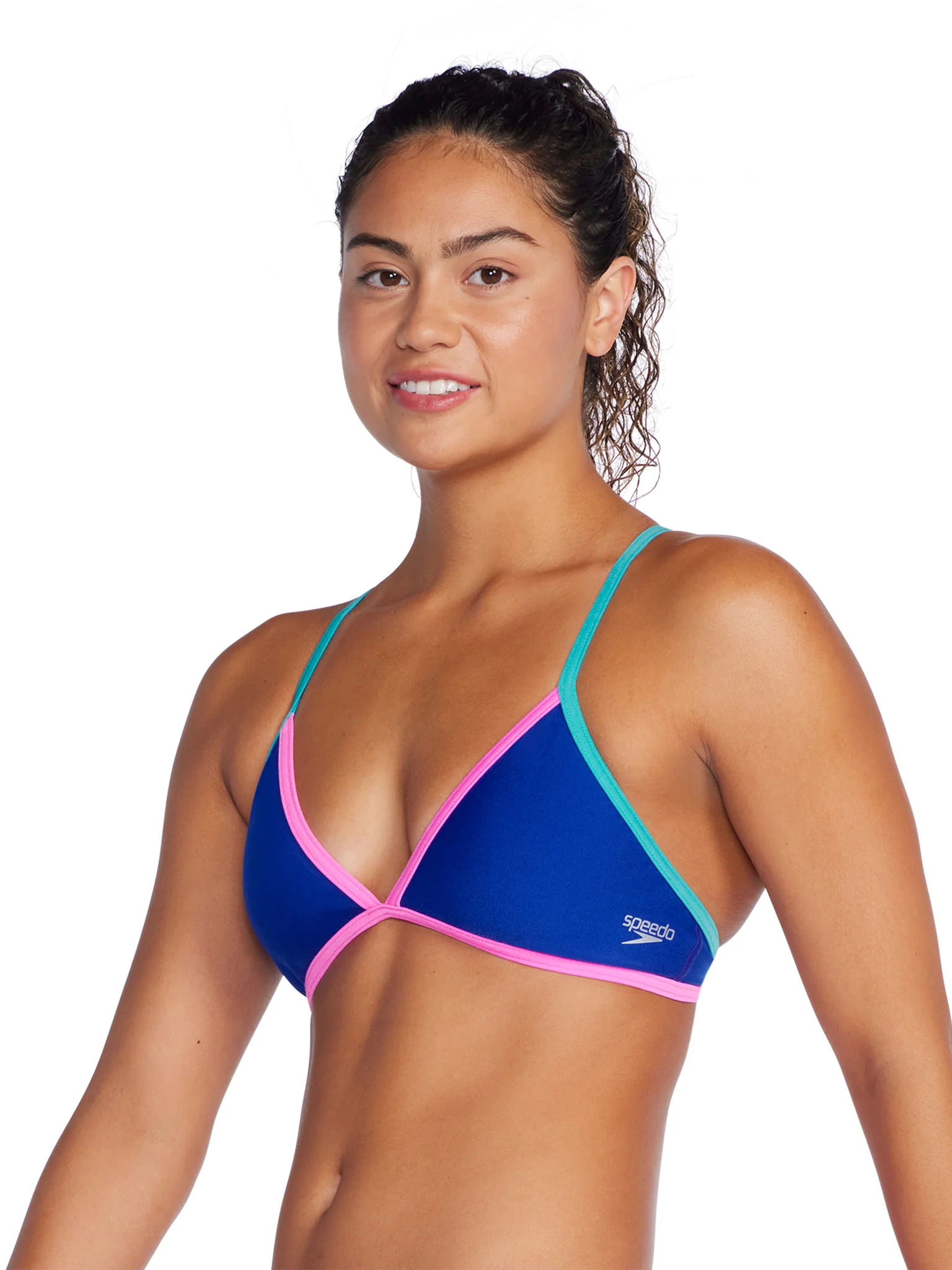 Le haut de maillot Solid Crossback Triangle est une tenue élégante axée sur la performance. Style dos noué. Fabriqué en tissu Speedo Eco Endurance résistant au chlore, composé de 52 % de polyester recyclé Repreve. UPF50+.
