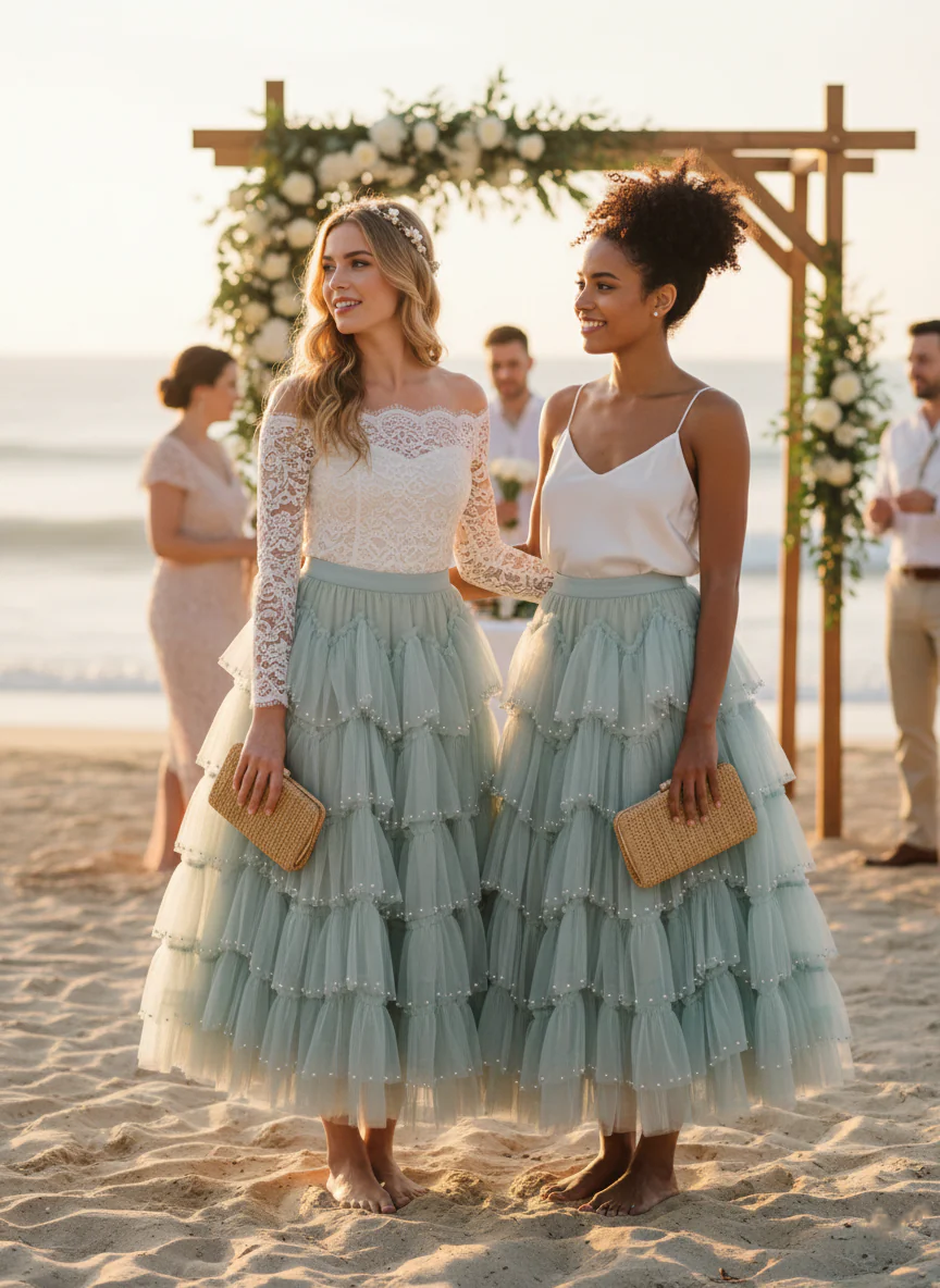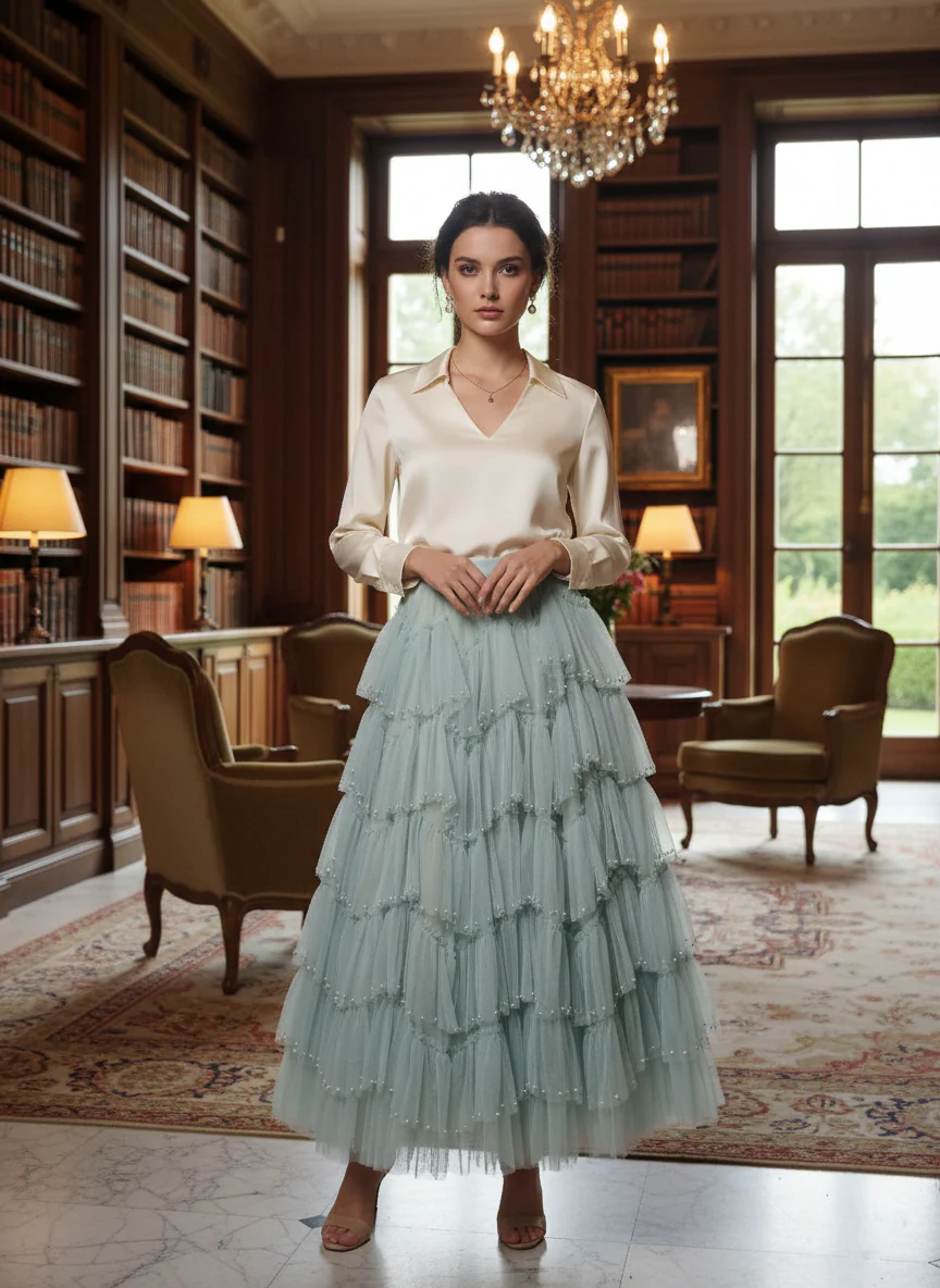 Imaginez porter Perla lors de vos occasions spéciales, admirer ce volant qui danse à chaque pas, sentir cette élégance vert d’eau qui vous donne une grâce marine… Perla devient votre joyau mode !