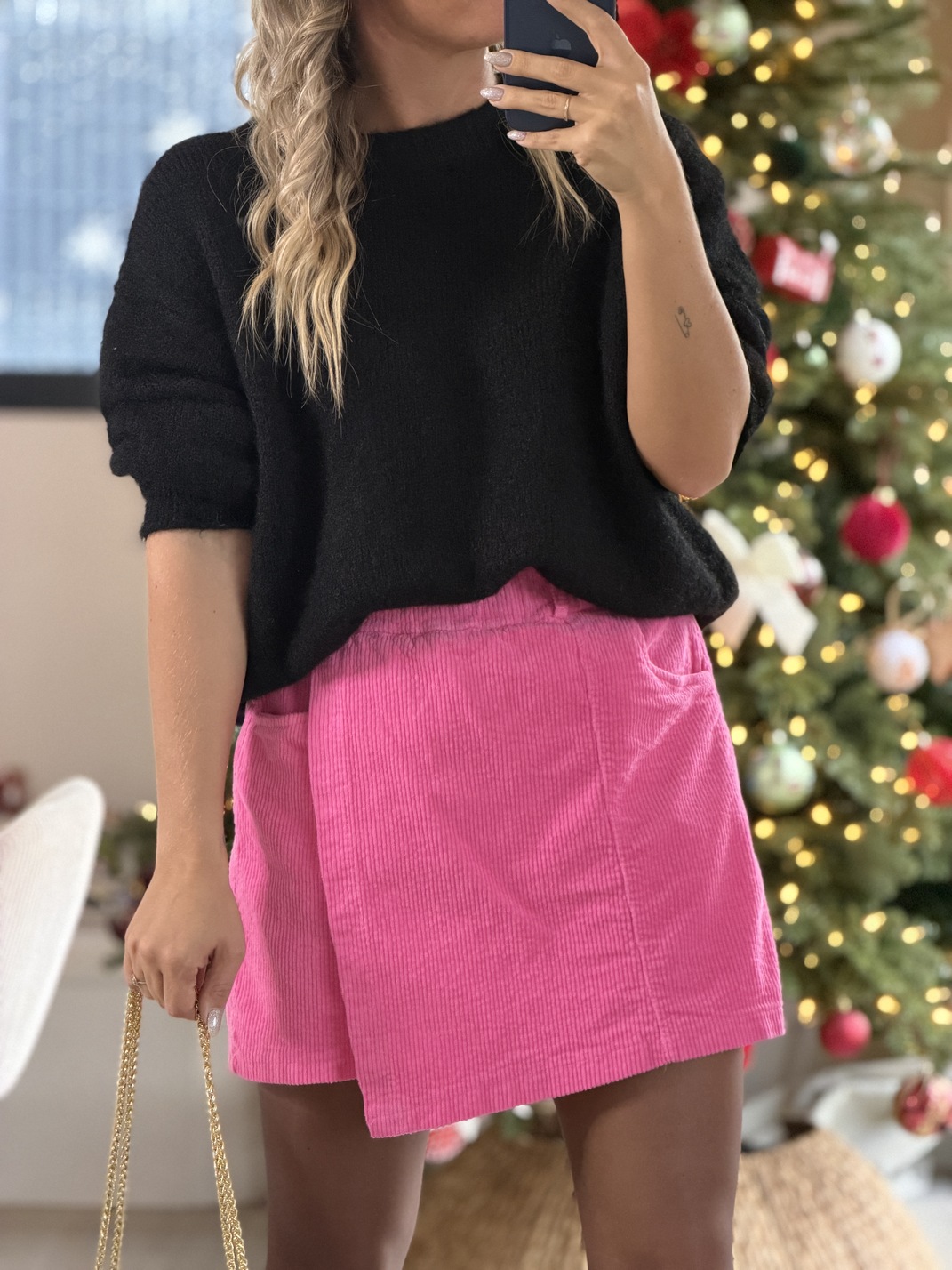 Jupe-short – DOLORÈS – ROSE (Made in Italie) Jupe-short Couleur : rose Elastique à la taille Très agréable à porter Velours côtelé Taille unique peut convenir du 34 au 40 Longueur = 40 cm Largueur = 36 cm Composition = 95% coton, 5% élasthanne Le modèle porte du S habituellement et mesure 1m65 Accessoires portés par le mannequin : Sac BENODET Noir, Bottines EUDORA Noire, Veste NARRA Rose, Pull HERMINE Noir