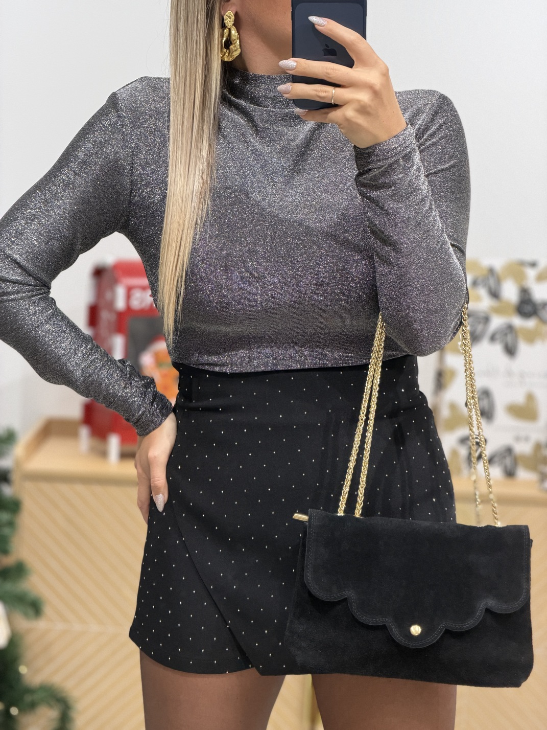 Jupe-short GAYA Jupe-short Couleur : Noir Petit strass Coupe regular (droite) Taille plutôt haute Tailles = S : 36, M : 38, L : 40, Longueur = S: 37 cm, M: 38 cm, L: 39 cm Largeur = S: 35 cm, M: 36 cm, L: 37 cm Composition : 97% polyester, 3% élasthanne Le modèle porte du M pour son S habituel et mesure 1m65 Accessoires portés par le mannequin : Veste ALYSSA, Sac BENODET Noir, Top NIGHTY, Bottines EUDORA noir