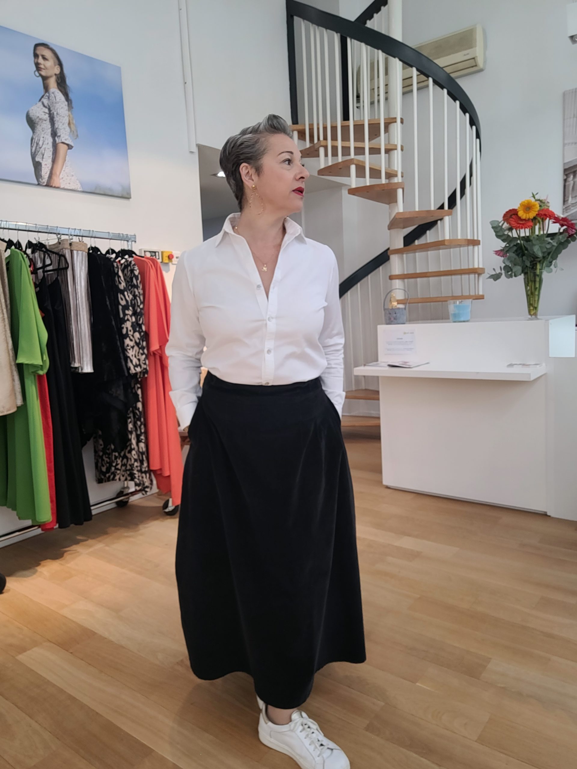 - Une jupe longue (mi-mollet) et ample inspiration fifties à la fois chic et facile à porter, qui s’adapte à votre style et à votre ligne