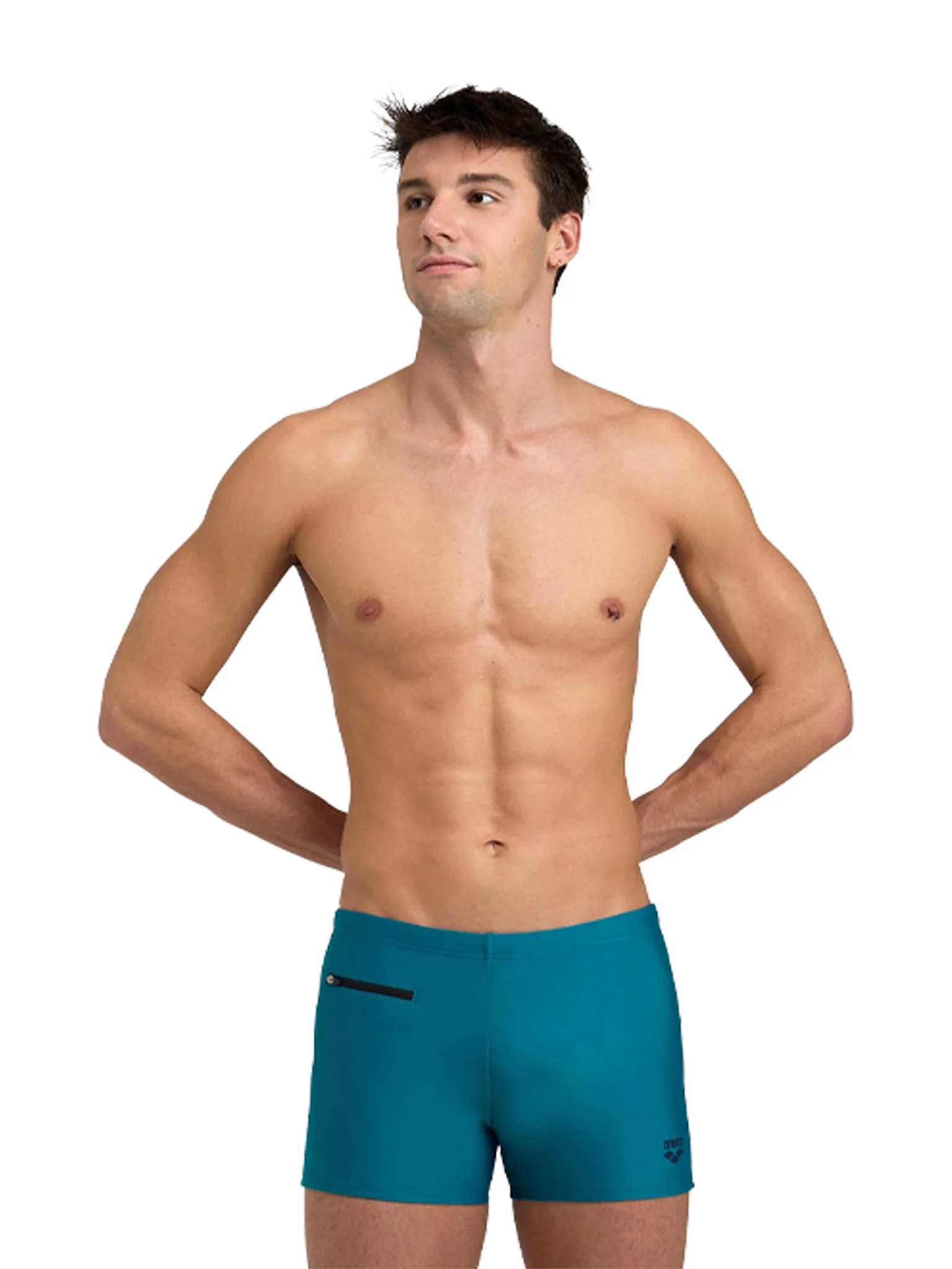 Maillot de natation coupe carrée Zip pour hommes – Bleu Sarcelle