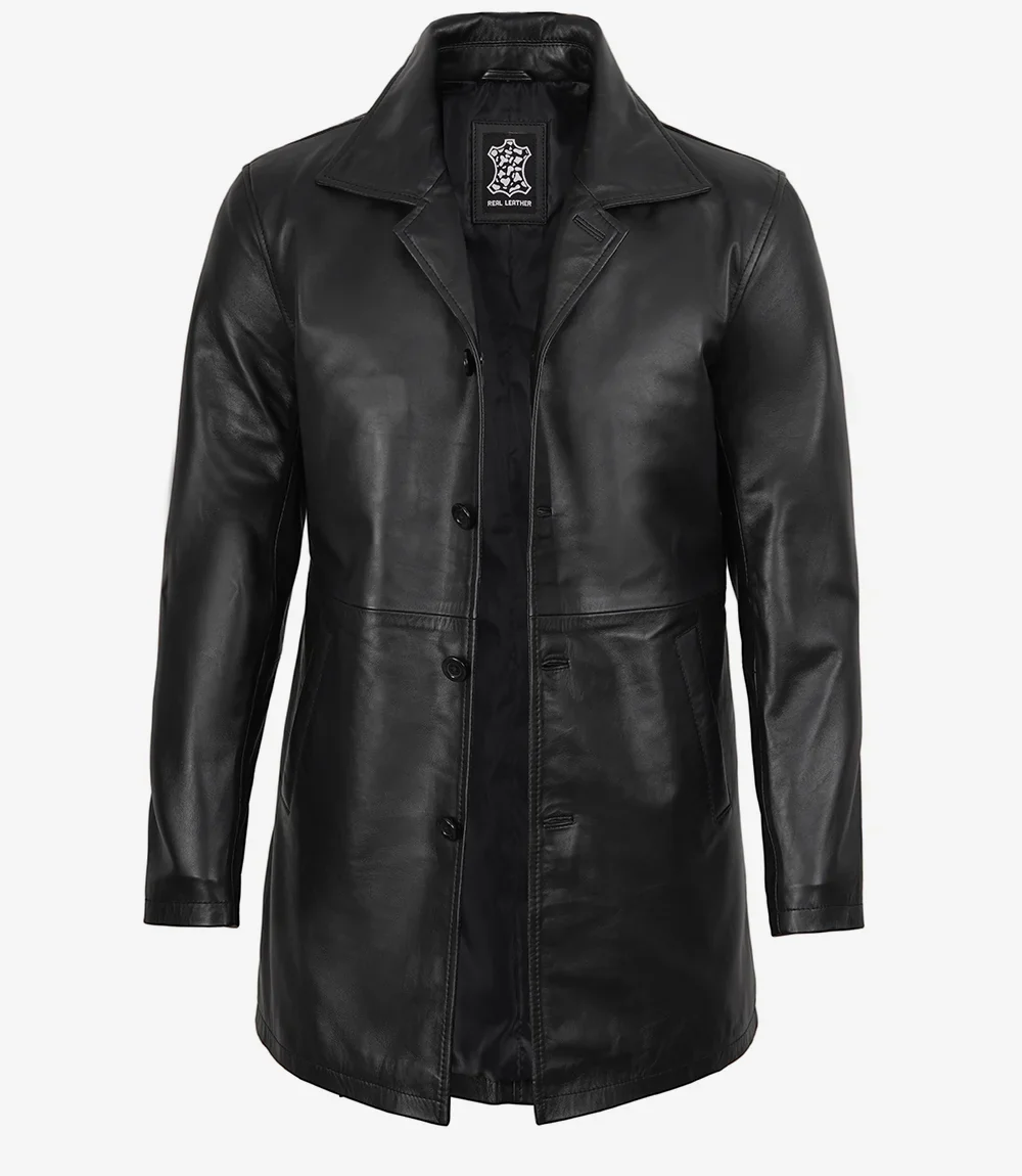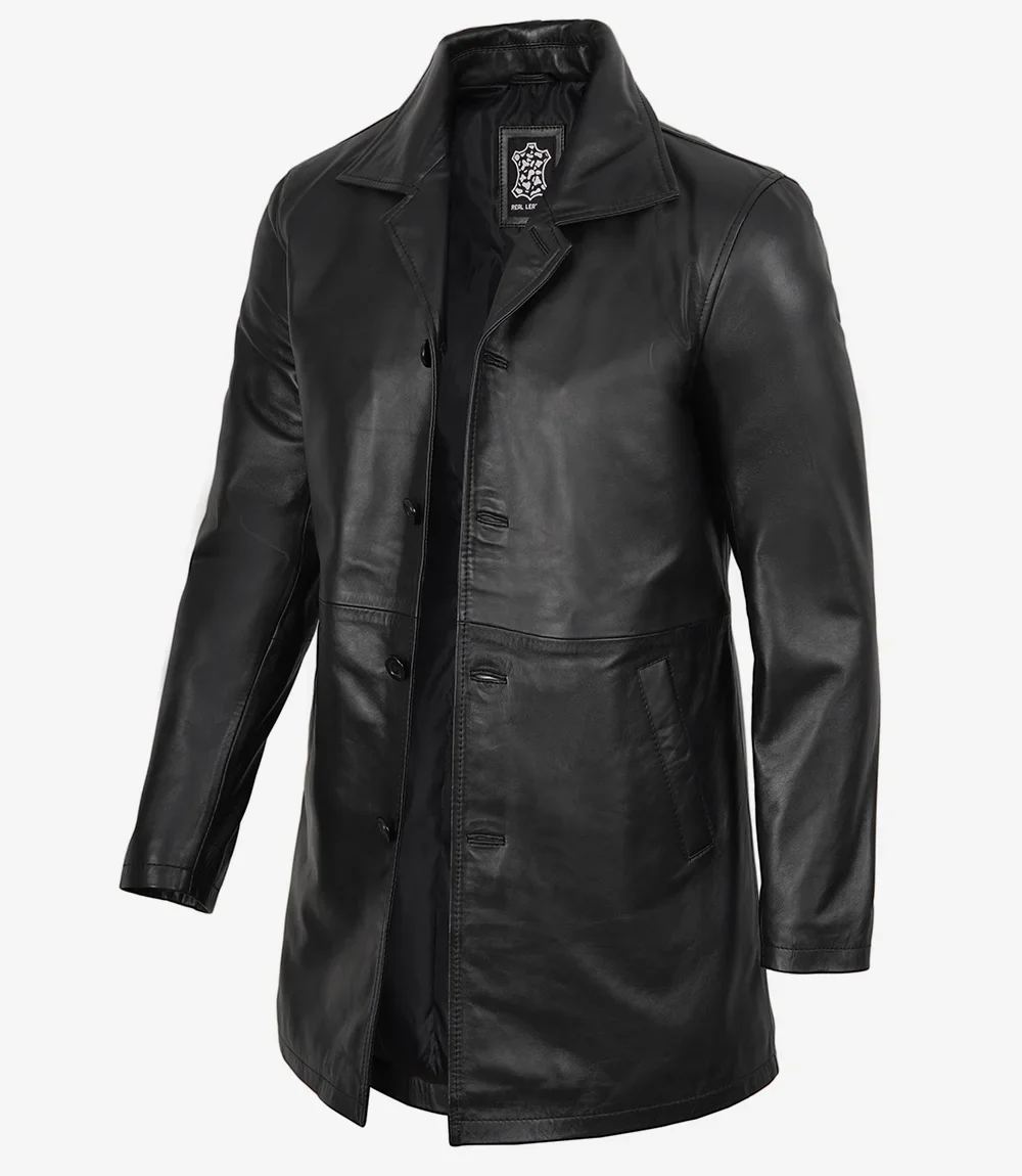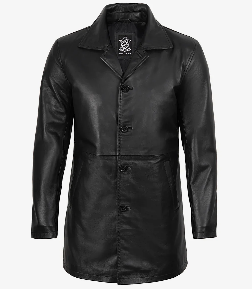 Adoptez la sophistication avec notre manteau en cuir noir pour homme. Confectionné avec soin en cuir d’agneau, il incarne le luxe. Sa longueur 3/4 assure une coupe polyvalente et flatteuse. Son design élégant et son toucher premium en font un indispensable de votre garde-robe.
