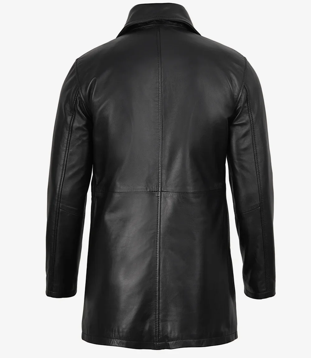 Manteau 3/4 en cuir d’agneau noir pour homme