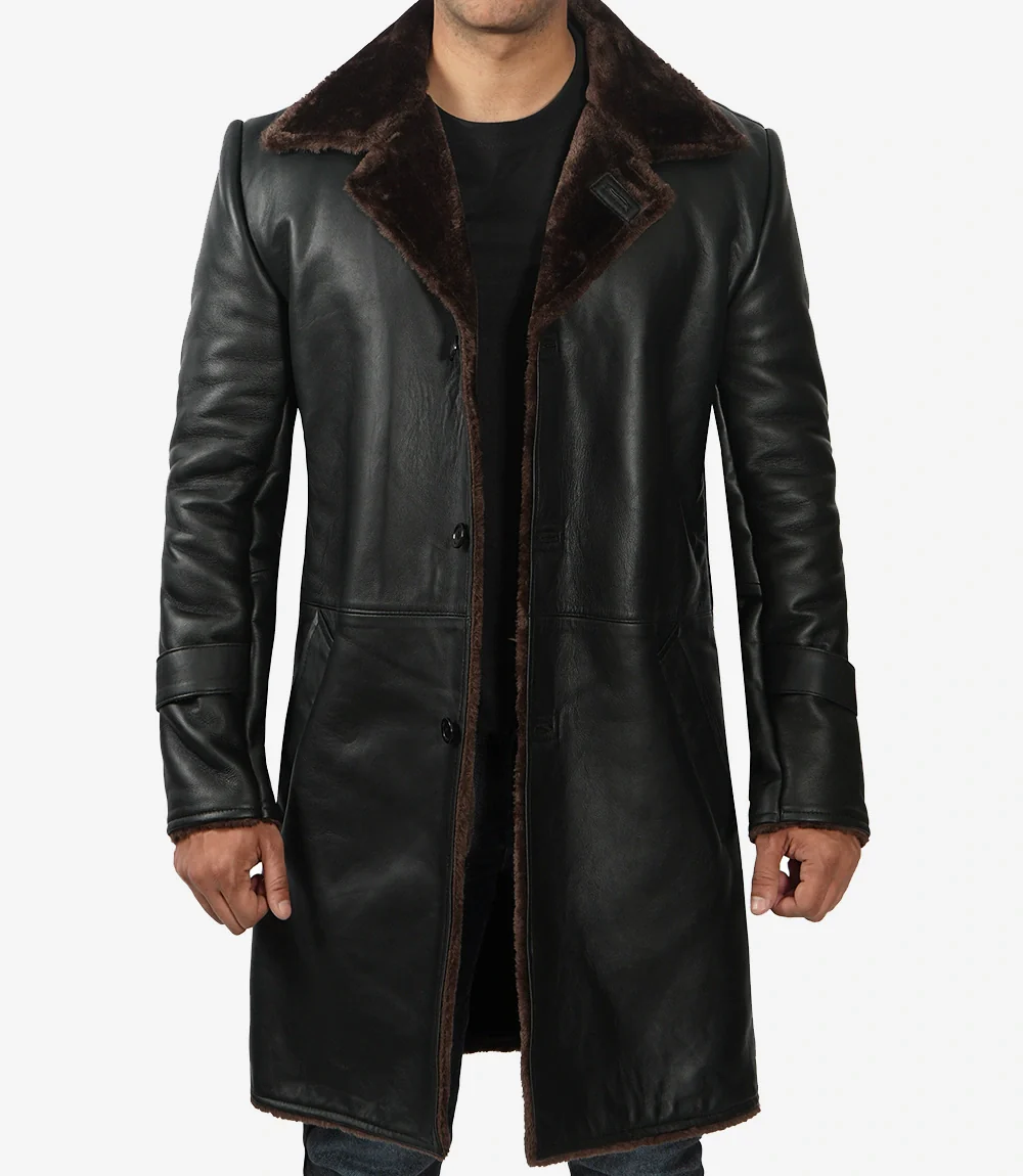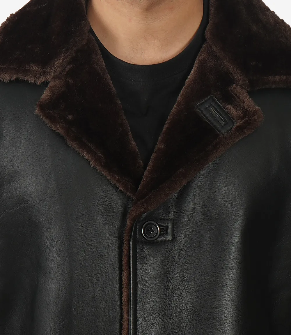 Manteau 3/4 en cuir de vache noir pour homme