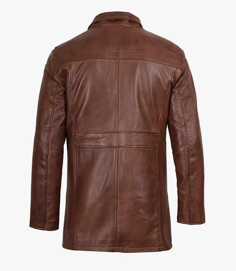 Vous apprécierez le confort et le style de ce manteau en cuir marron pour homme, idéal toutes saisons. Il est doté de caractéristiques qui rehaussent le style et la qualité du cuir. Col chemise et double fermeture pour une protection optimale contre le froid. Un indispensable de luxe pour vos déplacements en extérieur !