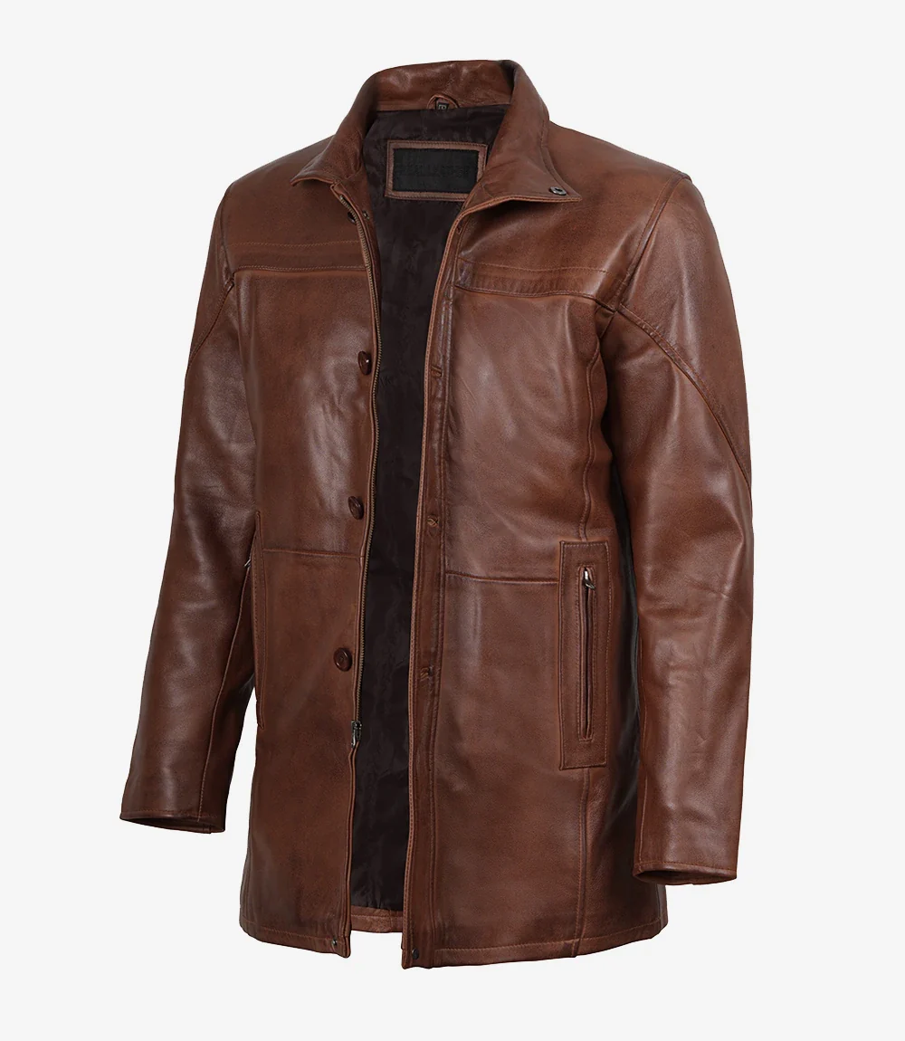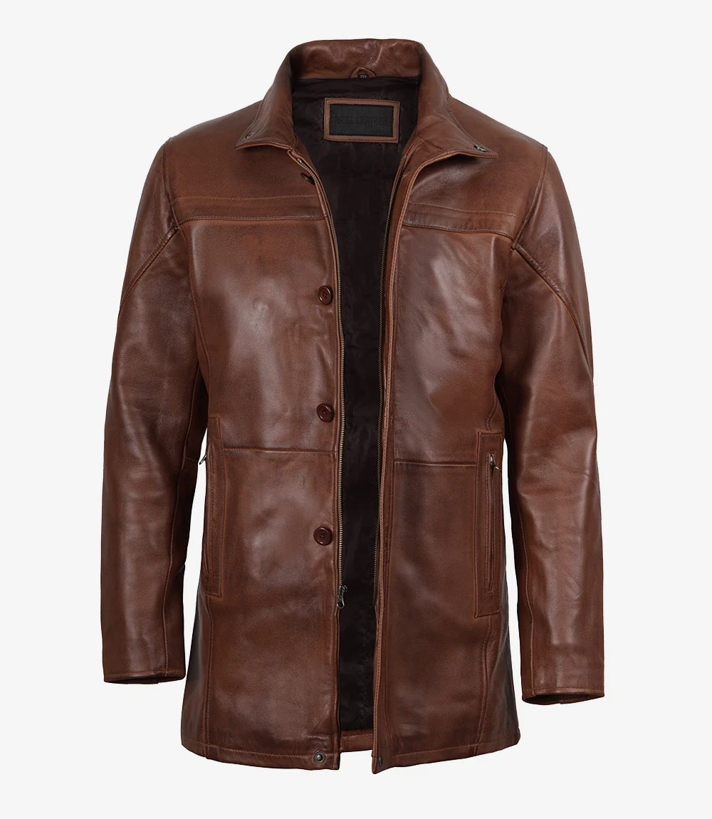 Manteau de voiture en cuir d’agneau véritable pour homme, couleur cognac