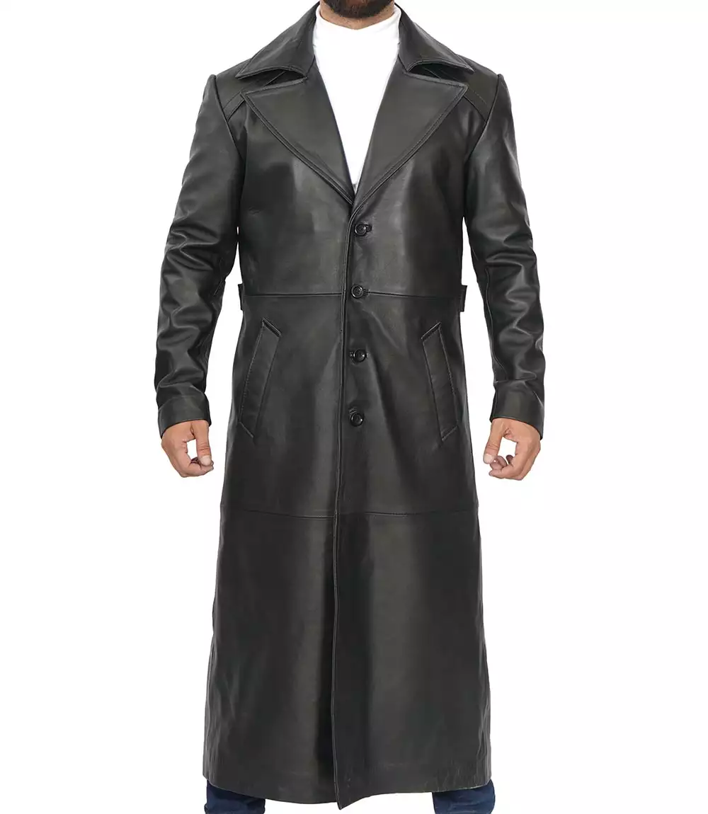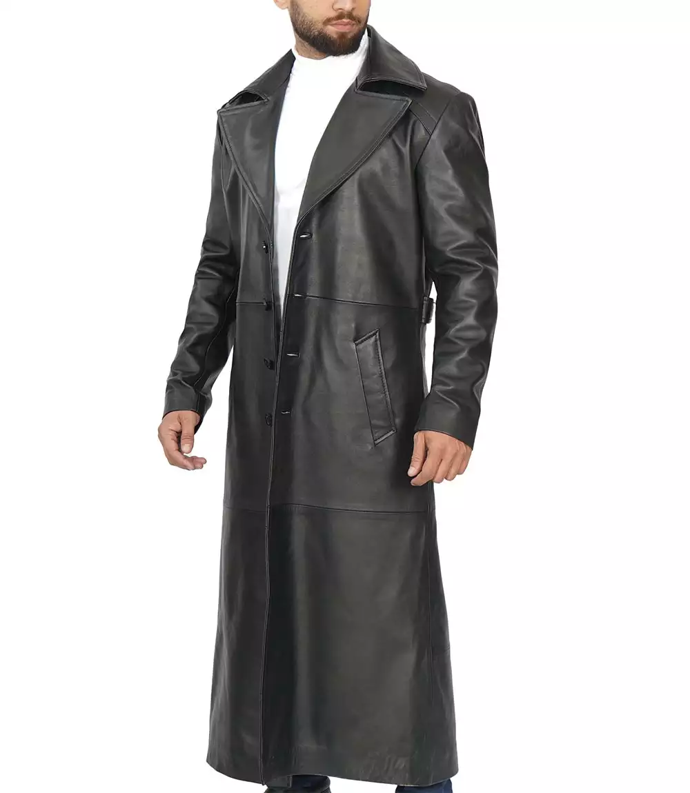 Manteau long en cuir noir pour homme – Duster Coat