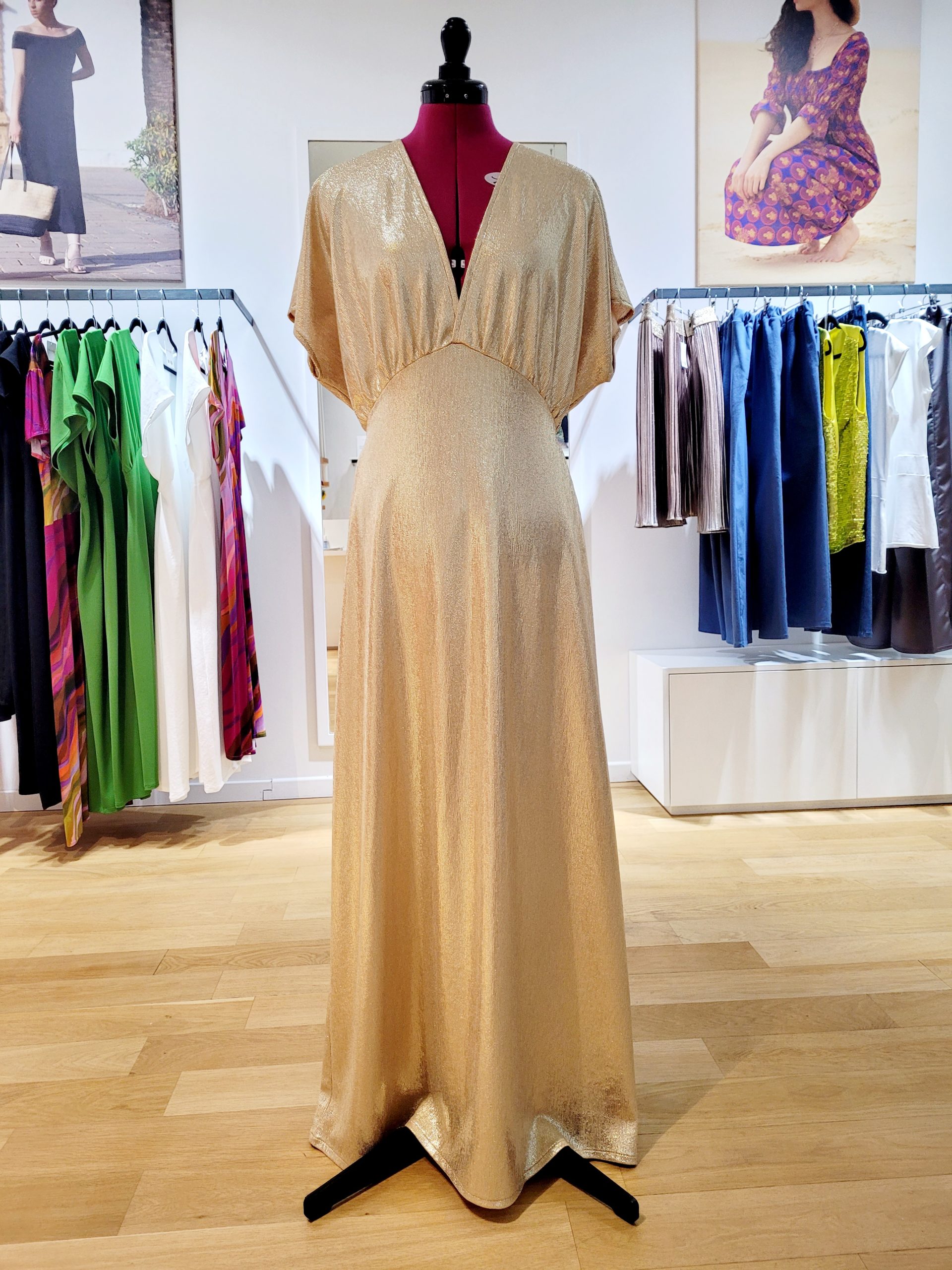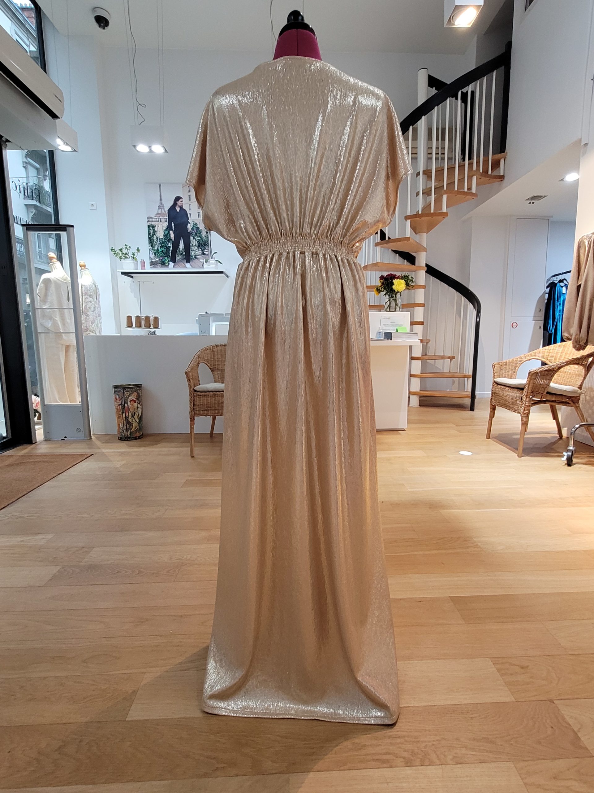 - Brillez dans cette sublime robe en jersey élasthanne doré Haute Couture !