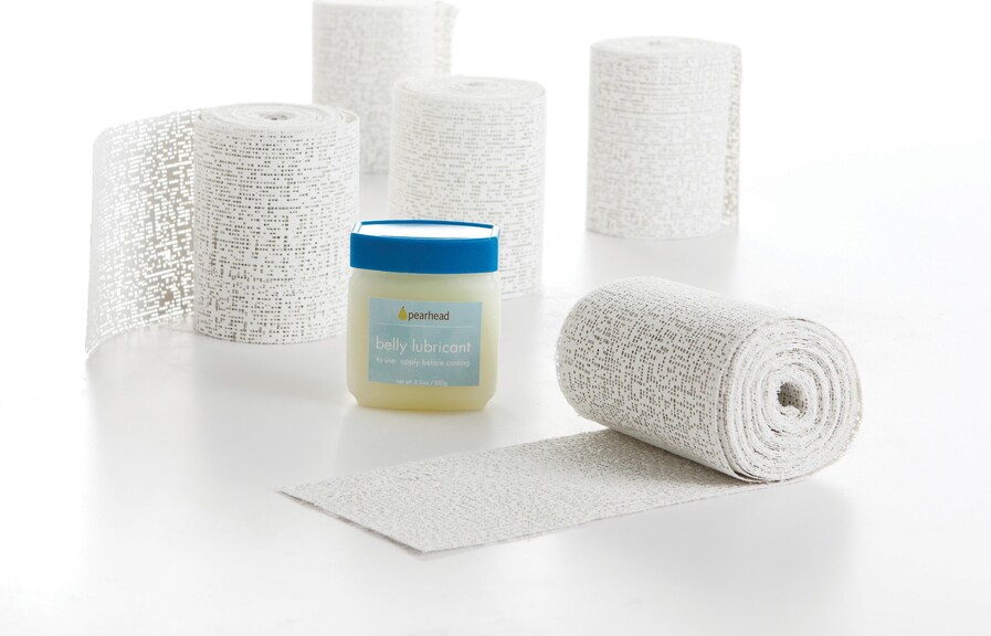Chaque kit comprend cinq rouleaux de ruban de plâtre, un lubrifiant pour le moulage, une toile de protection en plastique, des gants en latex et un écran de ponçage. Les instructions incluses vous guideront dans la création étape par étape.