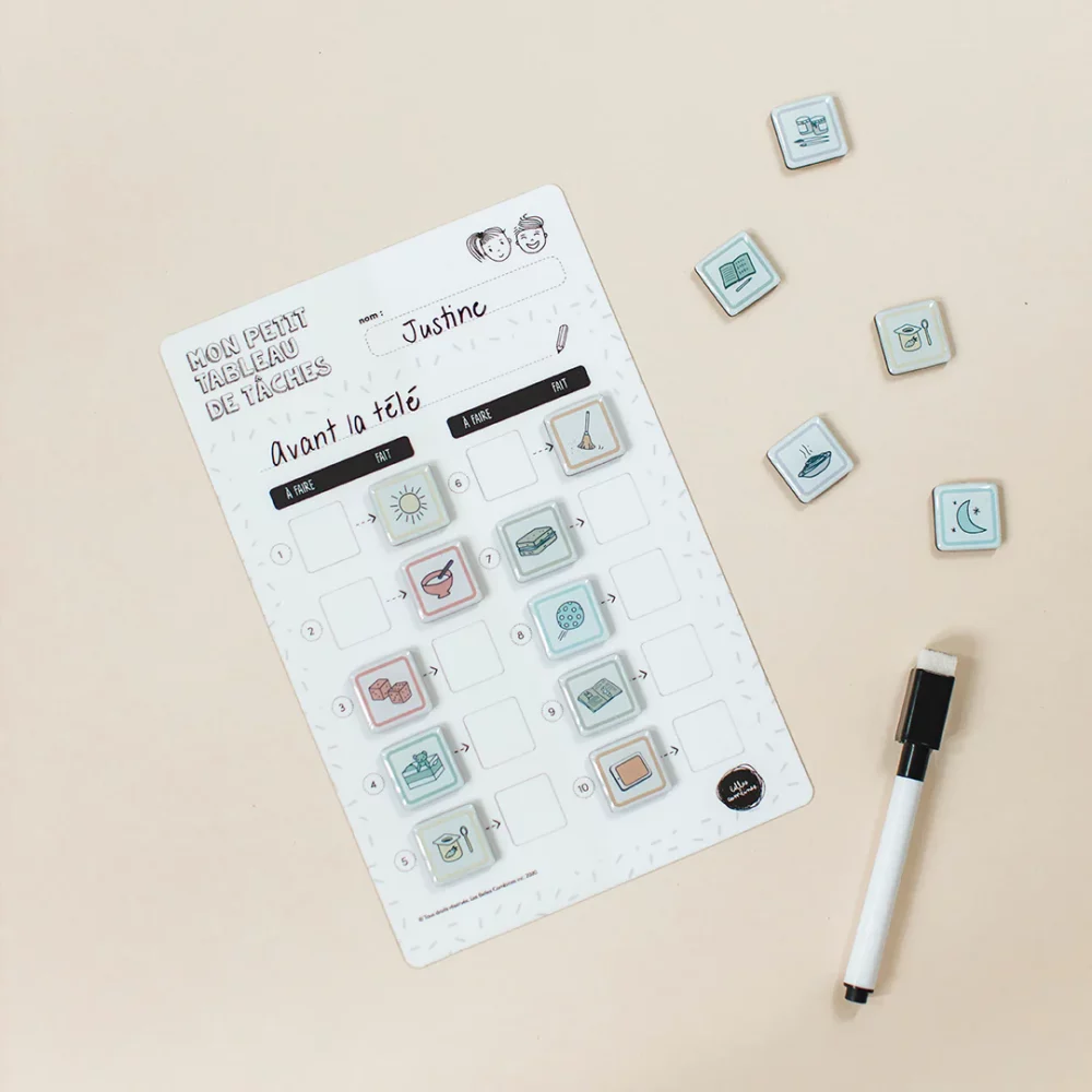 Un tableau magnétique évolutif et polyvalent qui vous permet de mettre en place une routine quotidienne ou de planifier une liste de tâches à effectuer pour votre enfant.