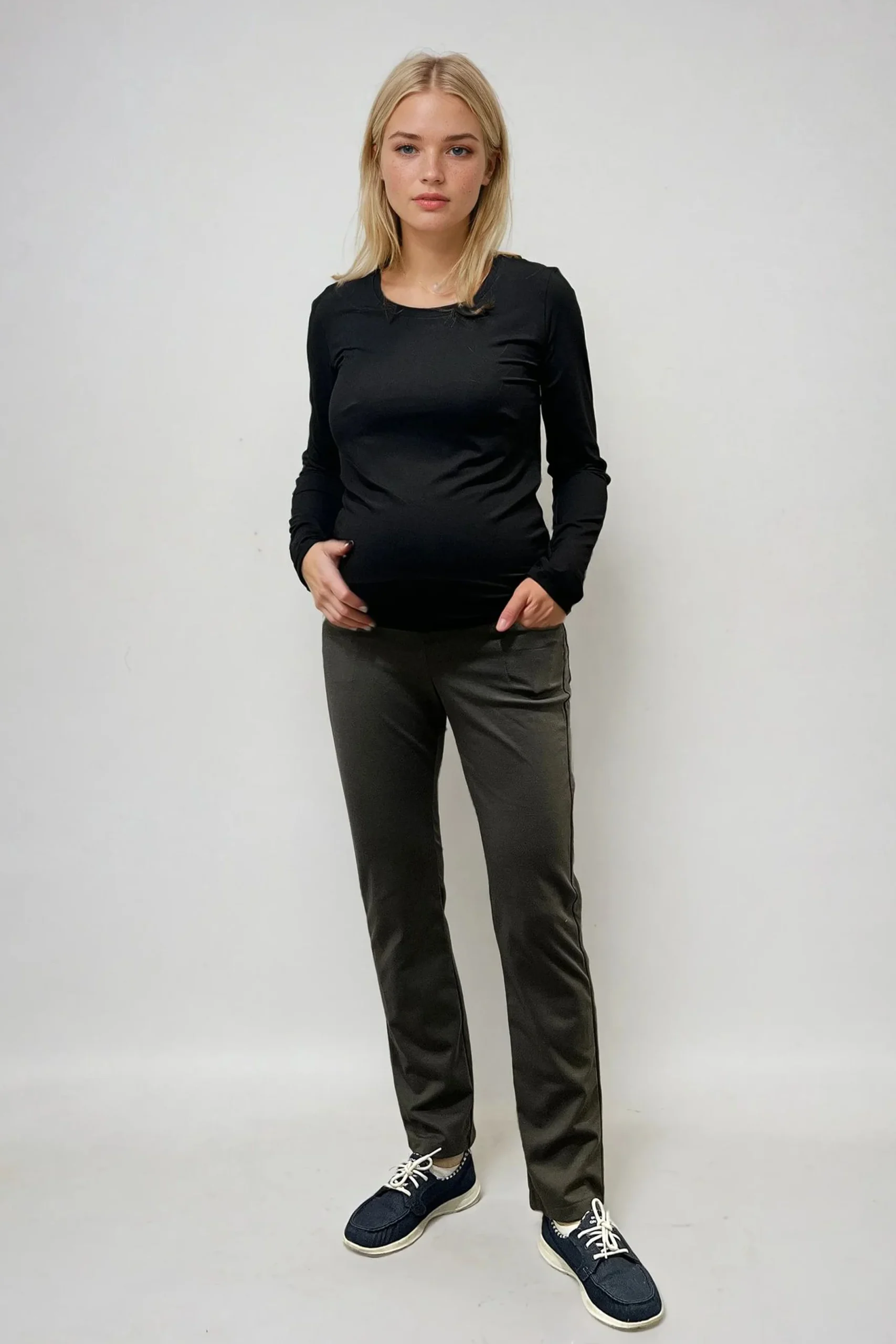 Découvrez notre pantalon de maternité à coupe droite, un essentiel qui vous accompagnera tout au long de votre grossesse. Ce pantalon de maternité est fabriqué dans un tissu extensible dans les deux sens, offrant un confort optimal et s’adaptant à toutes les silhouettes.