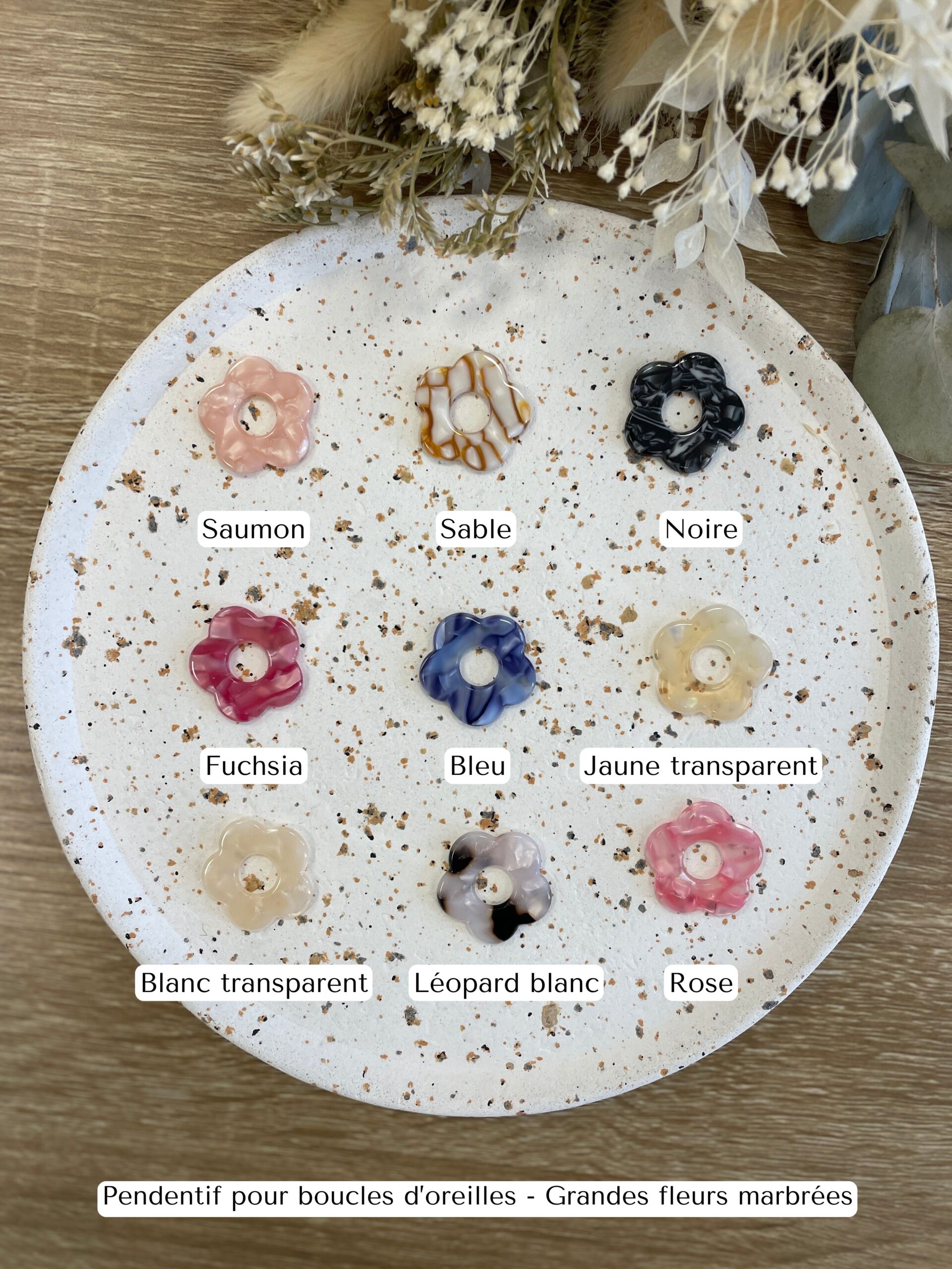 Pendentif pour boucles d’oreilles – Grosses fleurs marbrés
