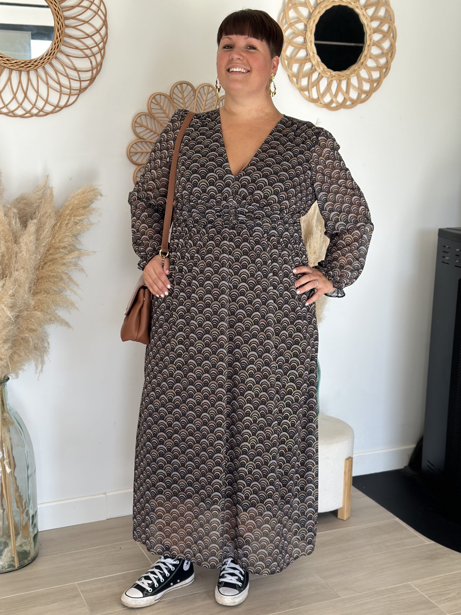 Robe HARDIN CURVY Robe Coloris : Bleu, gris, beige, taupe, or Élastique à la taille Col V Motifs or Coupe empire Manches longues Tailles = L: 40, XL : 42, 2XL: 44, 3XL : 46 et 4XL : 48 Longueur : L: 138 cm, XL : 140 cm, 2XL : 142 cm, 3XL : 143 […]