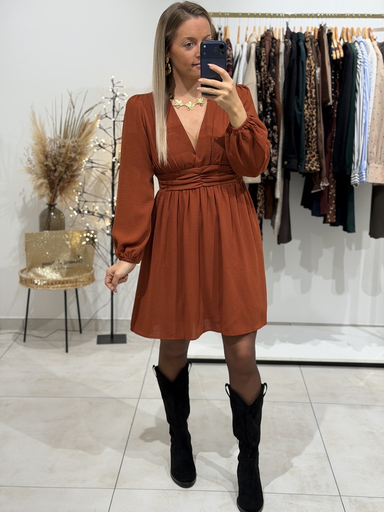 Robe LUDMILA – Brique – CURVY Robe Couleur : brique Col V avec bandeau Coupe empire Uni Manches longues S’adapte aux femmes enceintes Tailles = L: 40, XL:42, 2XL:44, 3XL : 46, 4XL : 48 Longueurs = L: 92 cm, XL: 93 cm, 2XL: 94 cm, 3XL: 95 cm, 4XL: 96 cm Largeurs sous aisselles = L: 42 cm, XL: 44 cm, 2XL: 46 cm, 3XL: 48 cm, 4XL: 50 cm Composition : 75% viscose, 25% polyamide Le modèle porte du S/M et mesure 1m65 Accessoires portés par le mannequin : Bottes SANTIAGO Noire
