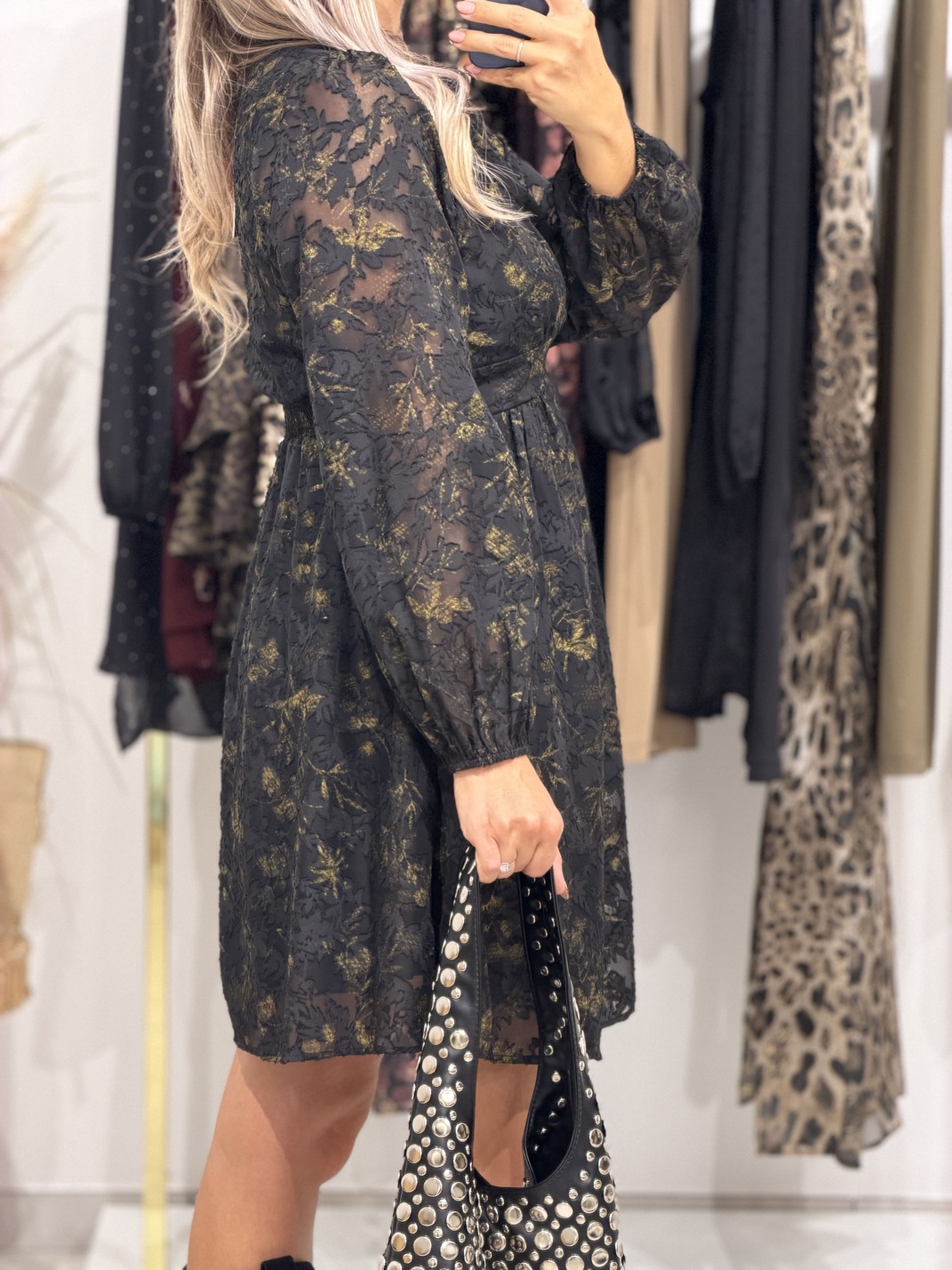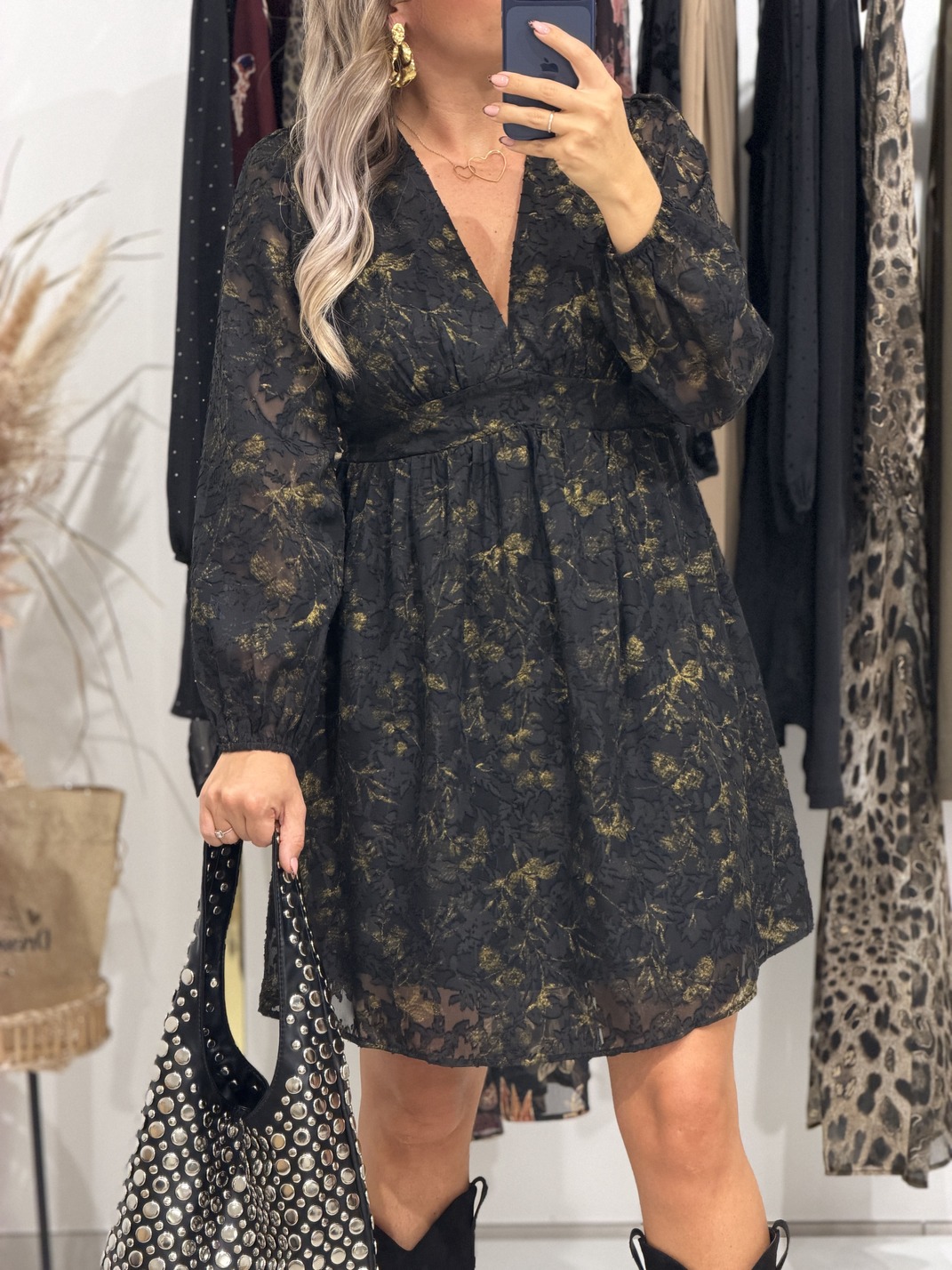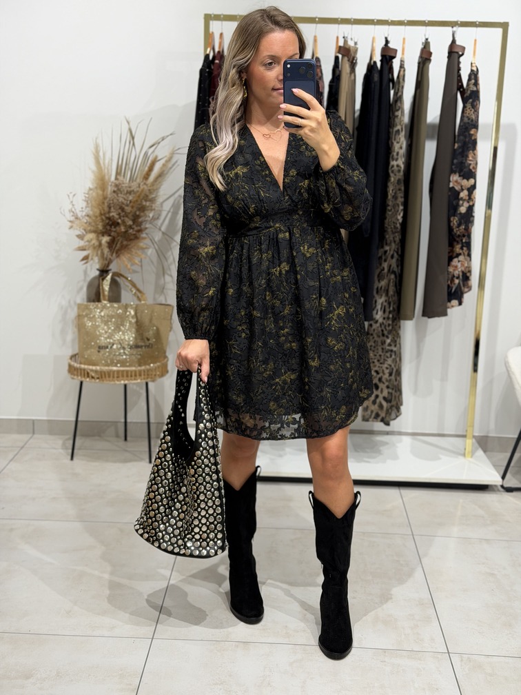 Robe MIDNIGHT – CURVY Robe Coloris : noir & doré Col V avec bandeau Coupe empire Imprimé texturé Manches longues S’adapte aux femmes enceintes Tailles = L: 40, XL:42, 2XL:44, 3XL : 46, 4XL : 48 Longueurs = L: 92 cm, XL: 93 cm, 2XL: 94 cm, 3XL: 95 cm, 4XL: 96 cm Largeurs sous aisselles = L: 42 cm, XL: 44 cm, 2XL: 46 cm, 3XL: 48 cm, 4XL: 50 cm Composition : 60% polyester, 40% viscose Le modèle porte du S et mesure 1m65 Accessoires portés par le mannequin : Sac AMAZING, Pull IMA Noir, Bottes SANTIAGO Noire
