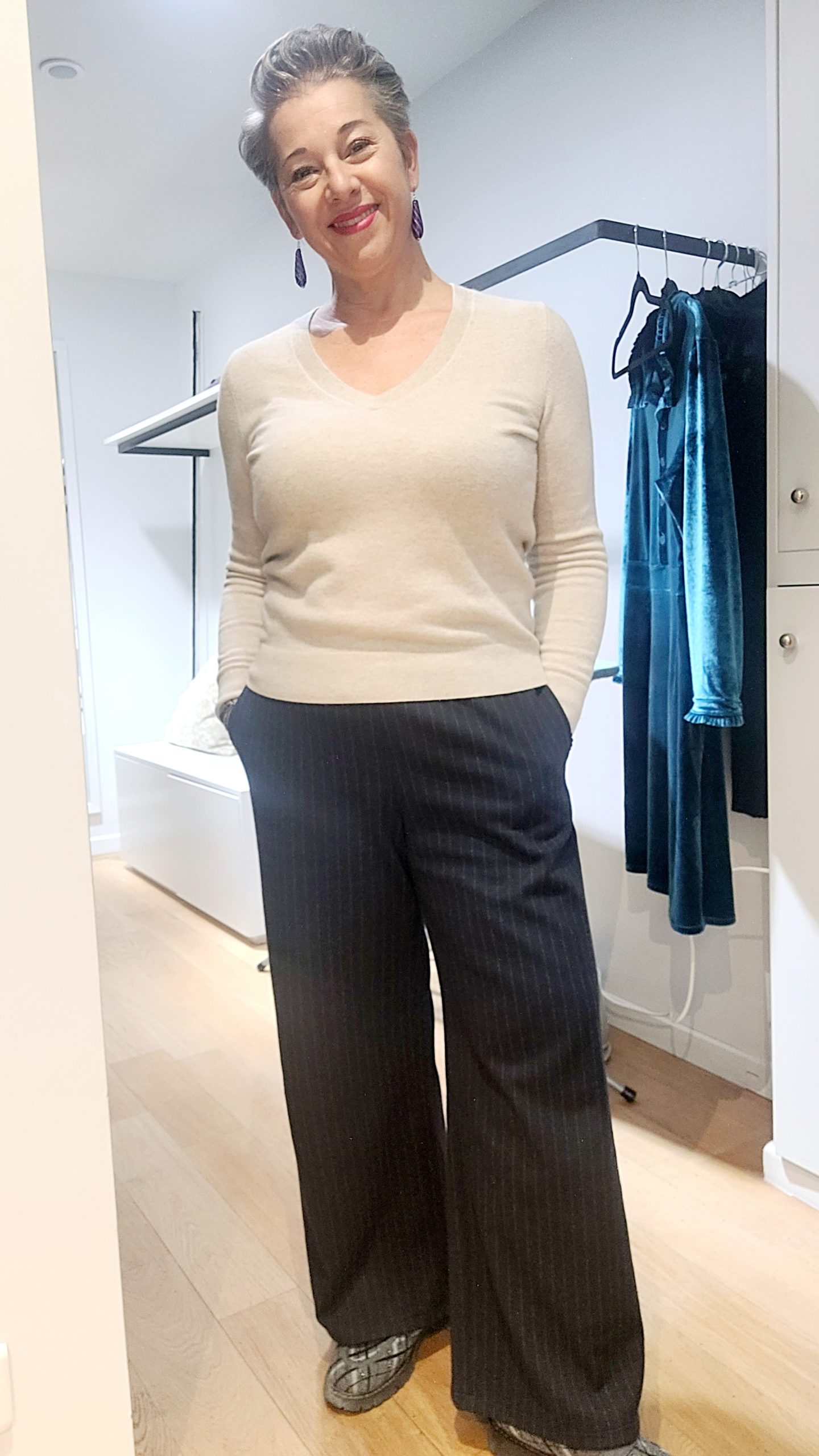 Un sublime coton/laine/élasthanne Haute Couture et Eco-Responsable bleu foncé à fines rayures grises Un tombé souple avec de la tenue Un tissu Haute Couture très doux, chaud et respirant Un pantalon chic et décontracté qui s’adapte à votre style et à votre morphologie Des poches côtés pour une coupe large très tendance Une taille élastiquée […]