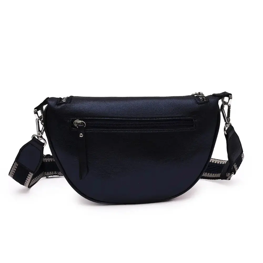 Livré avec deux bandoulières interchangeables – une en synthétique pour un look sobre et épuré, l’autre en tissu fantaisie pour une touche plus mode – ce sac s’adapte à votre style du jour. Il peut se porter en bandoulière, en travers du corps ou à la taille, pour un maximum de liberté.