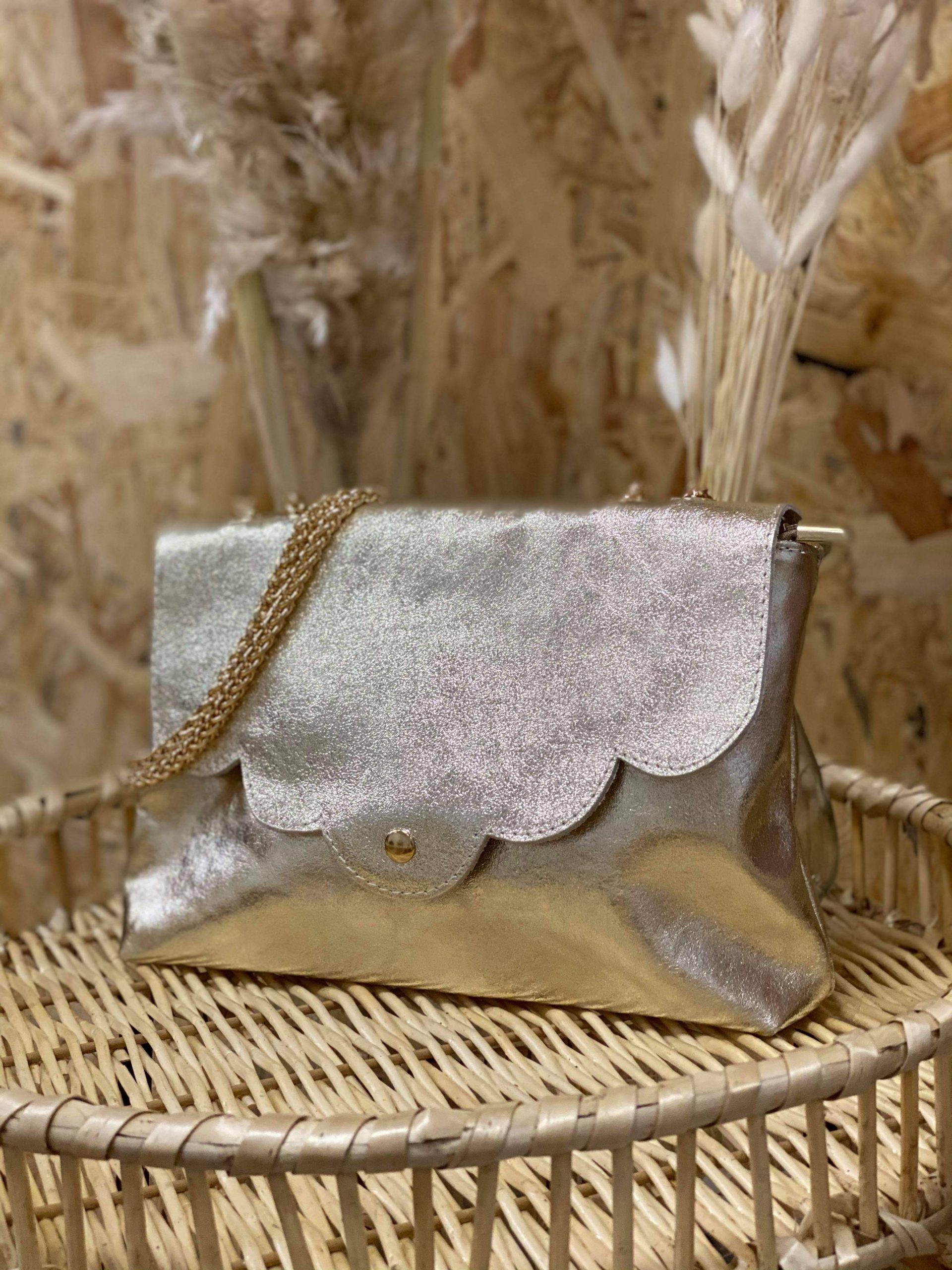 SAC BENODET OR Sac en cuir Coloris : OR Fermeture pression Dimension : 27*18 cm Fabriqué en Italie Composition : 100% cuir