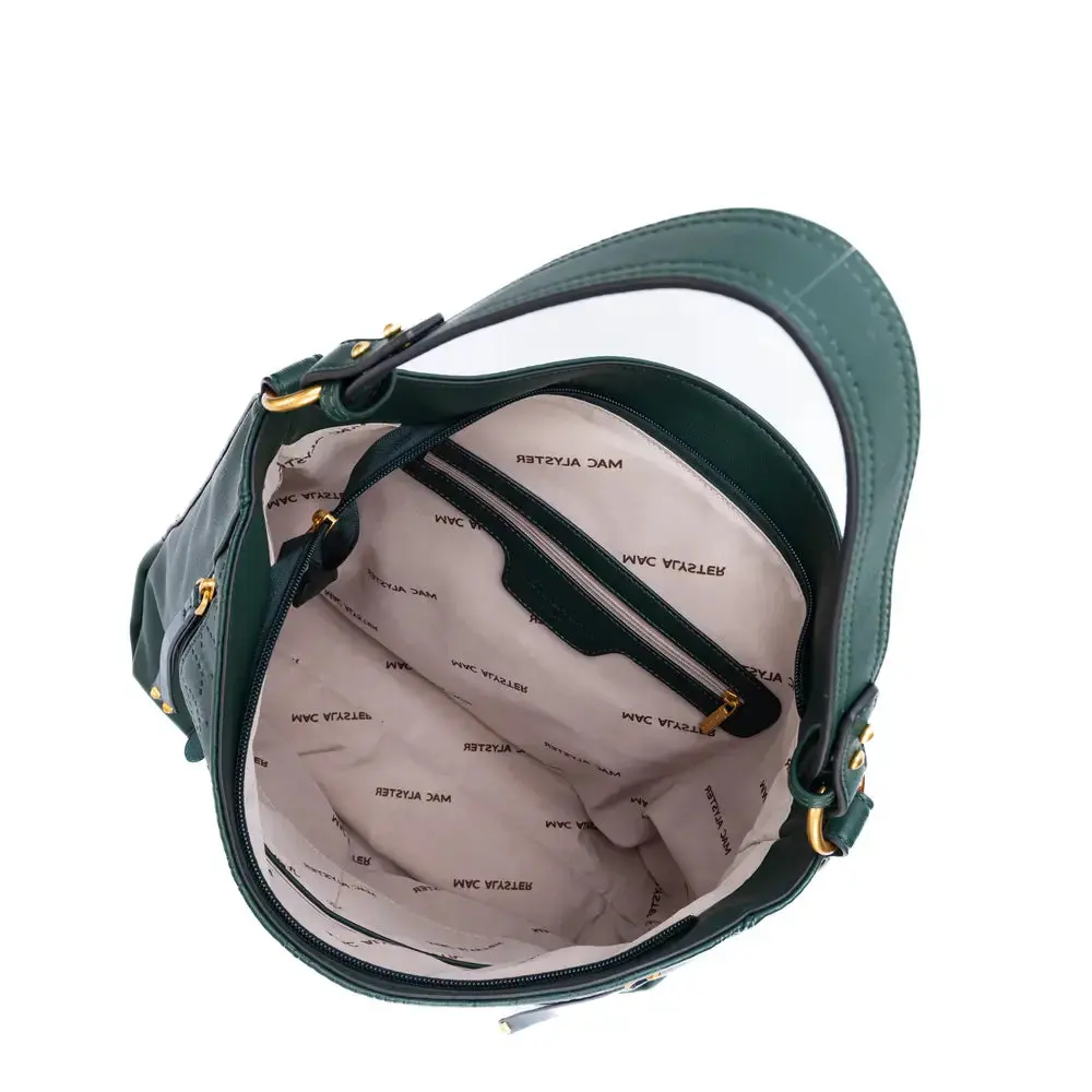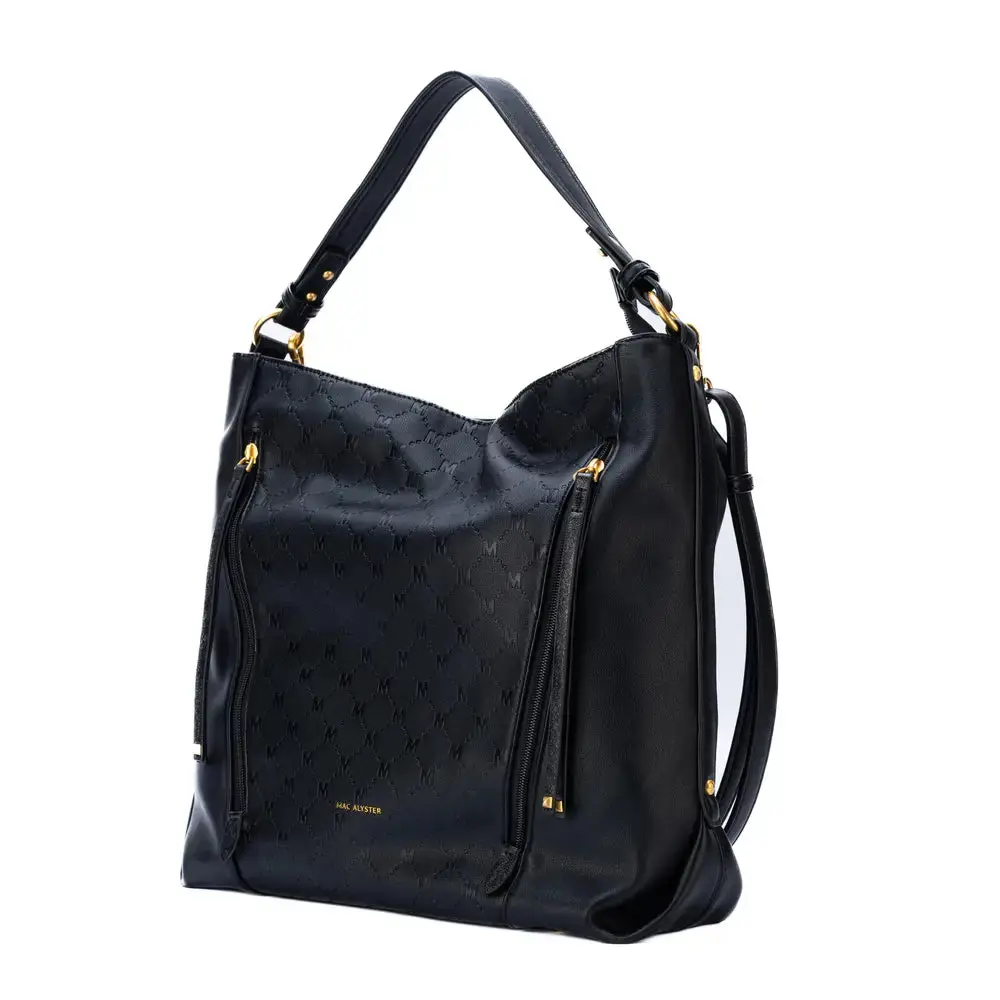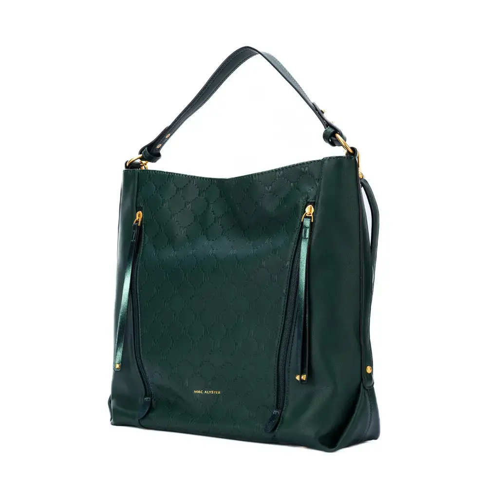 Le sac besace Mac Alyster porté épaule (réf. NS-662-03) combine un look monogram chic et des rangements pratiques. Son format vertical est idéal pour le quotidien, avec une ouverture sécurisée et des poches bien pensées.