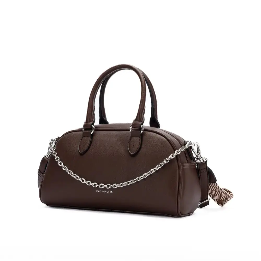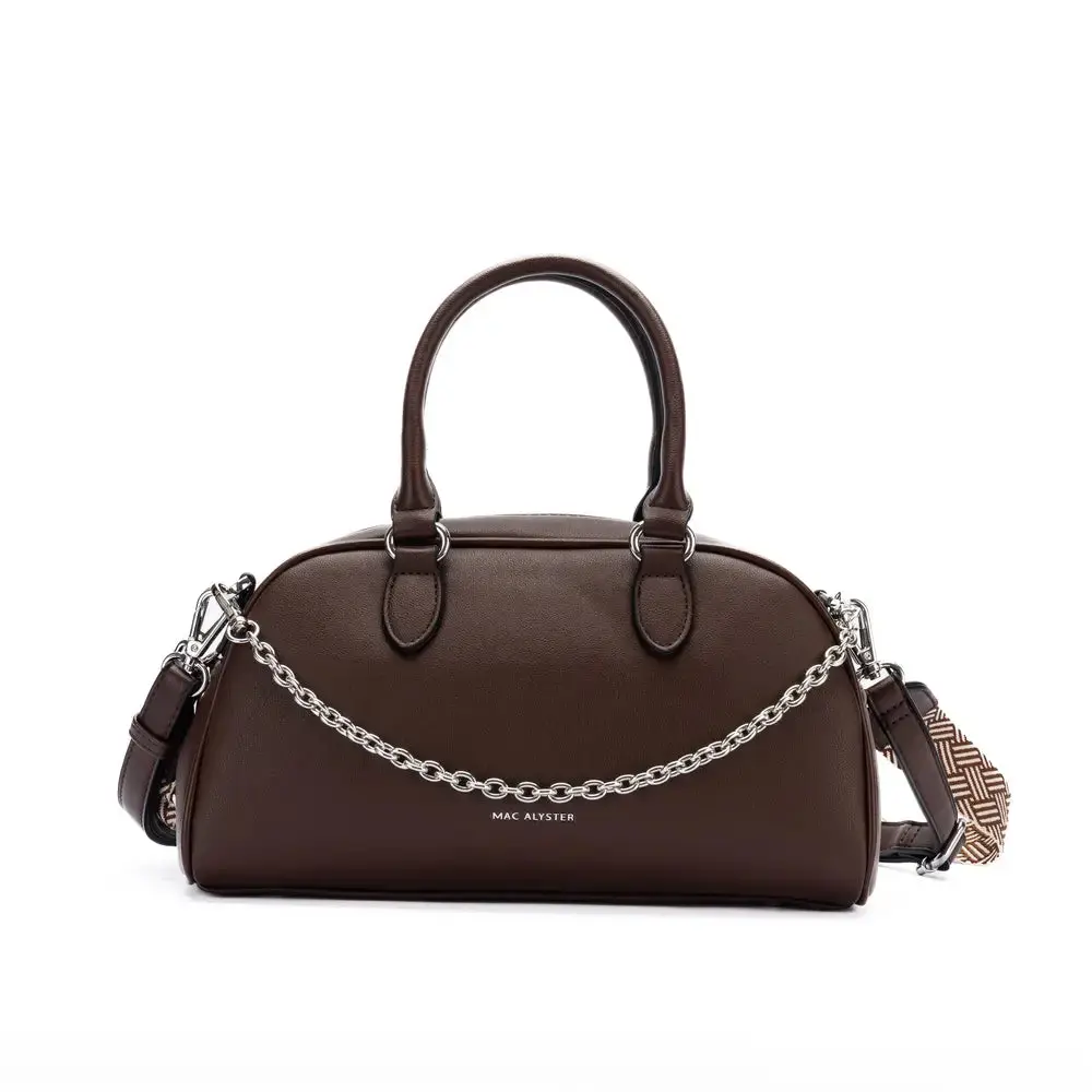 Le sac bowling Mac Alyster « Milan » KSI-368 revisite le classique du genre avec des détails modernes et une silhouette élégante. Compact mais spacieux, il séduit par ses lignes arrondies, ses finitions argentées et sa double bandoulière amovible qui permet de l’adapter à toutes vos envies.