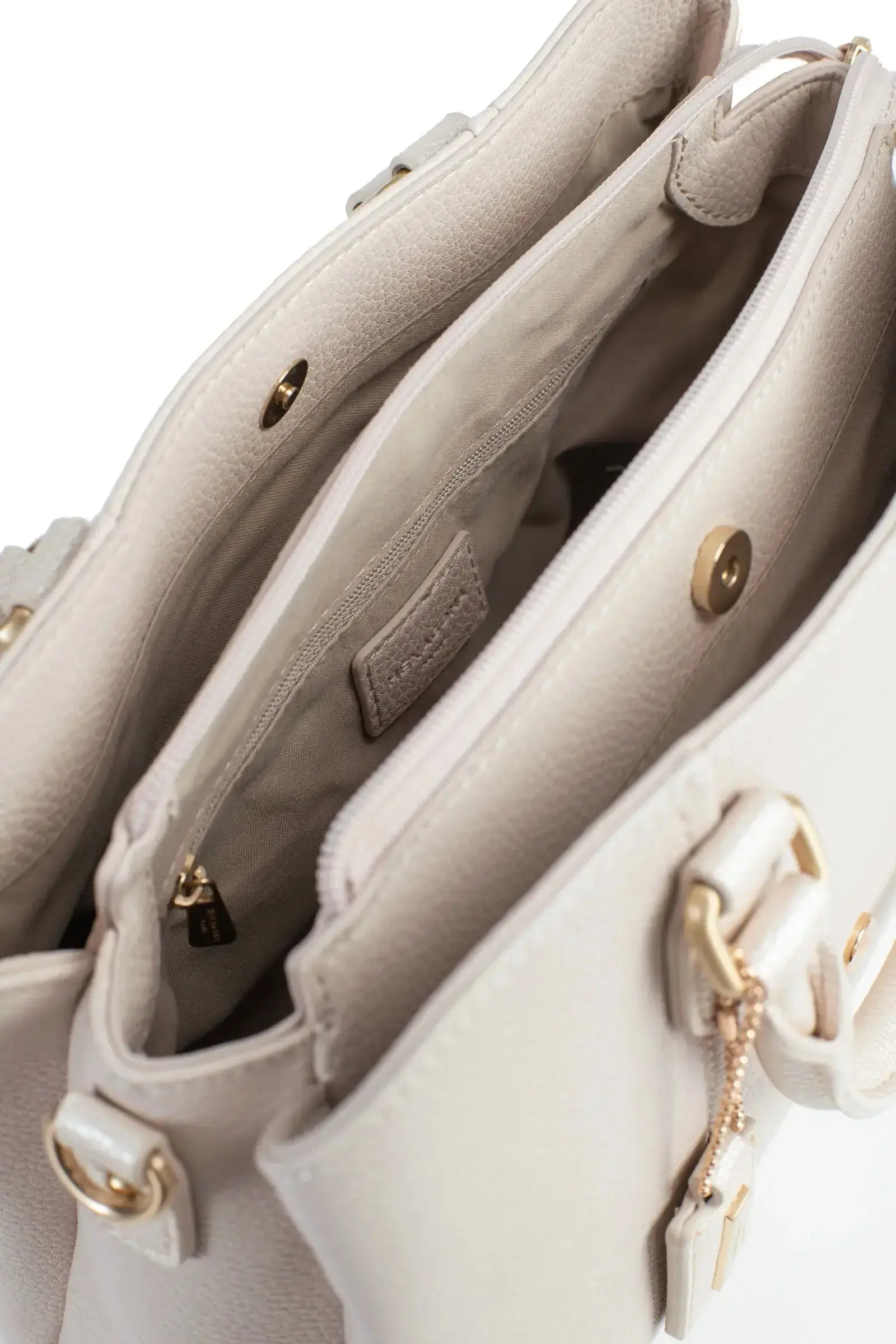 Ce sac offre une organisation optimale avec trois compartiments principaux, une poche plate zippée et deux poches plates, dont une dédiée au téléphone portable. À l’extérieur, une poche arrière plate aimantée facilite l’accès à vos objets essentiels. Grâce à ses deux poignées non réglables (26 cm) et sa bandoulière réglable amovible (69 cm à 127 cm), il vous permet une flexibilité de port adaptée à votre confort.