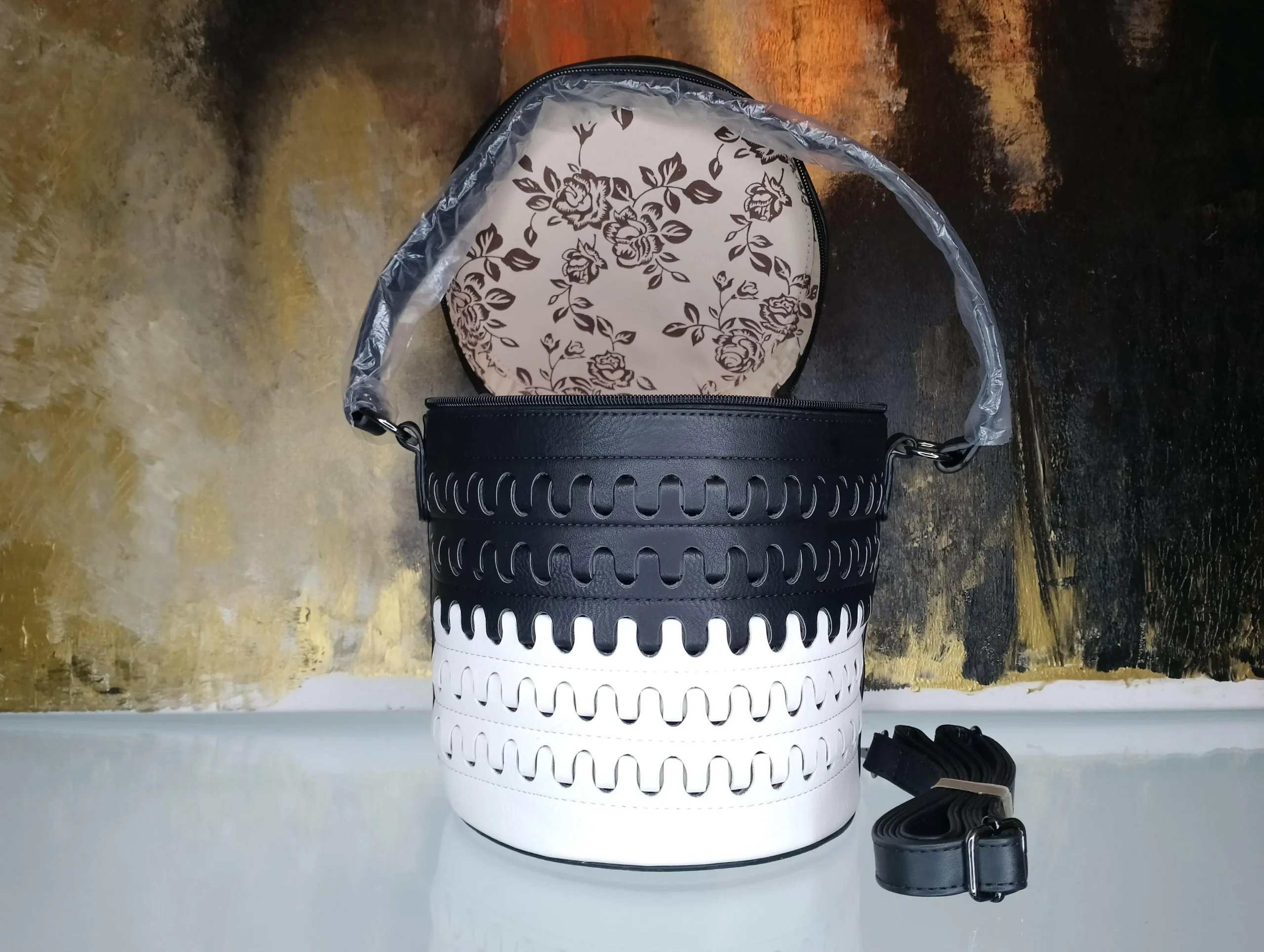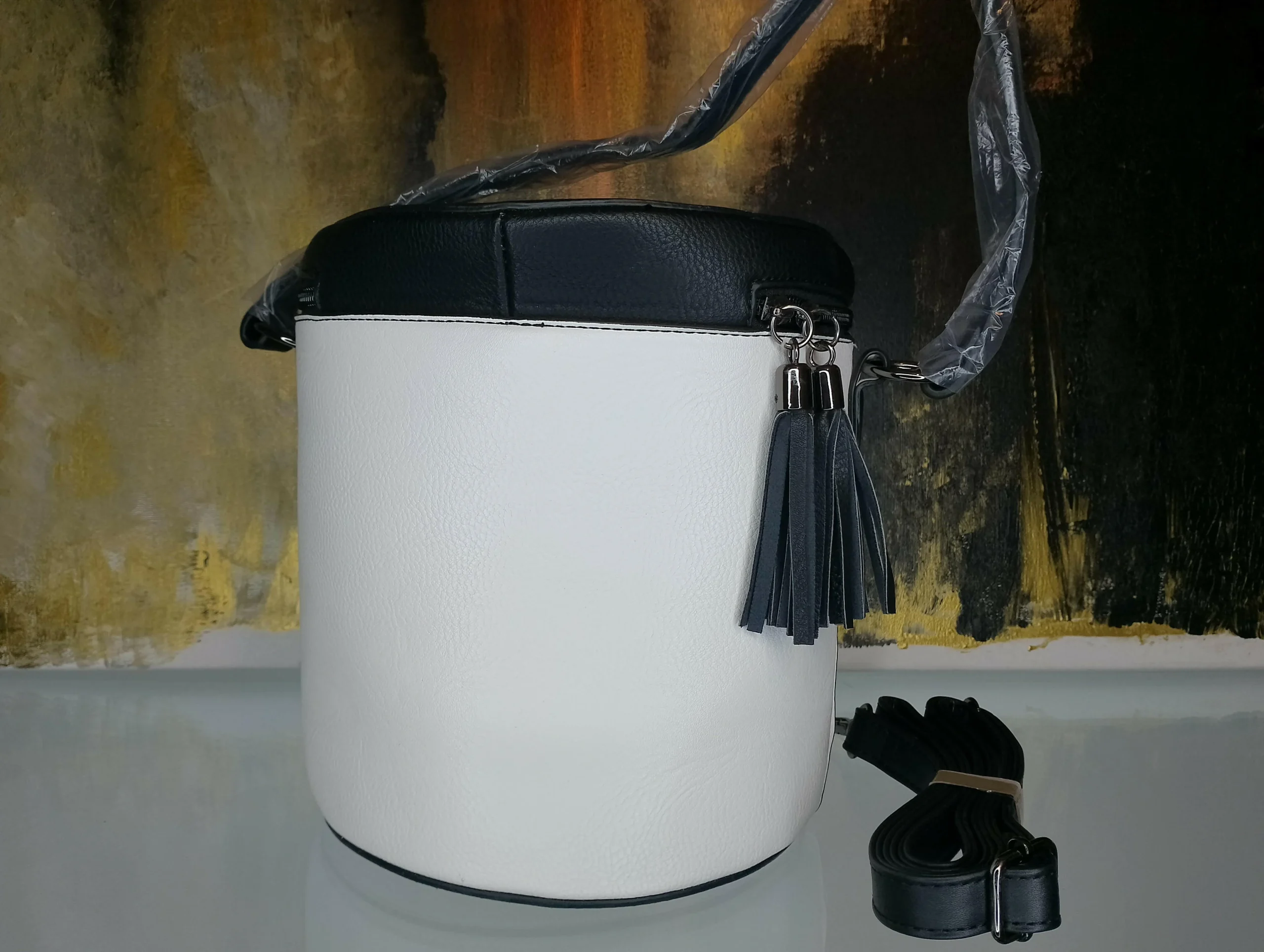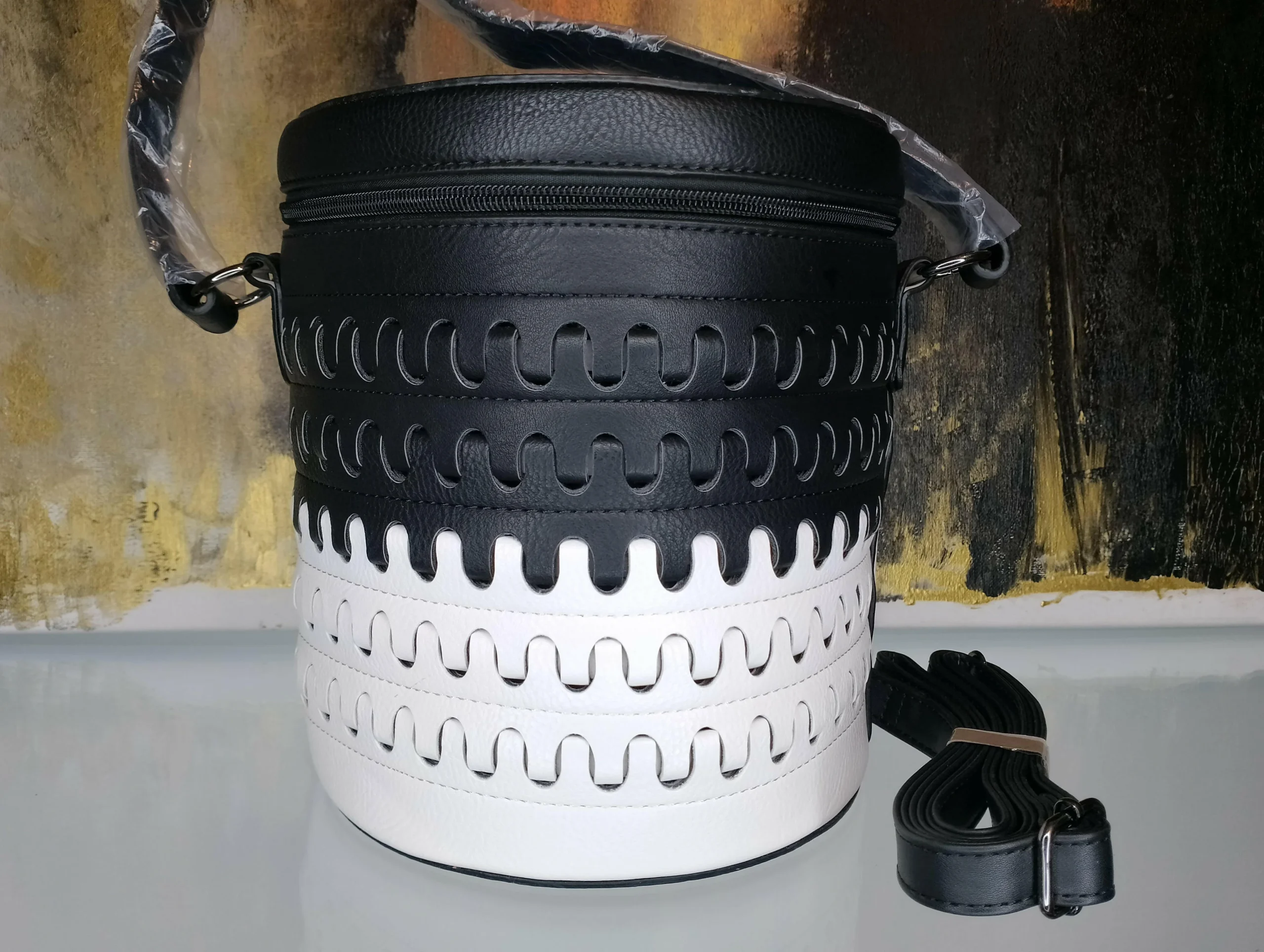 Découvrez le Sac sceau Arlequin, à porter en avant-bras ou simplement à la main. Seconde sangle fournie pour être porté épaule ou croisé. Pièce bicolore blanc/noir, entièrement doublé avec grande capacité en format moyen.