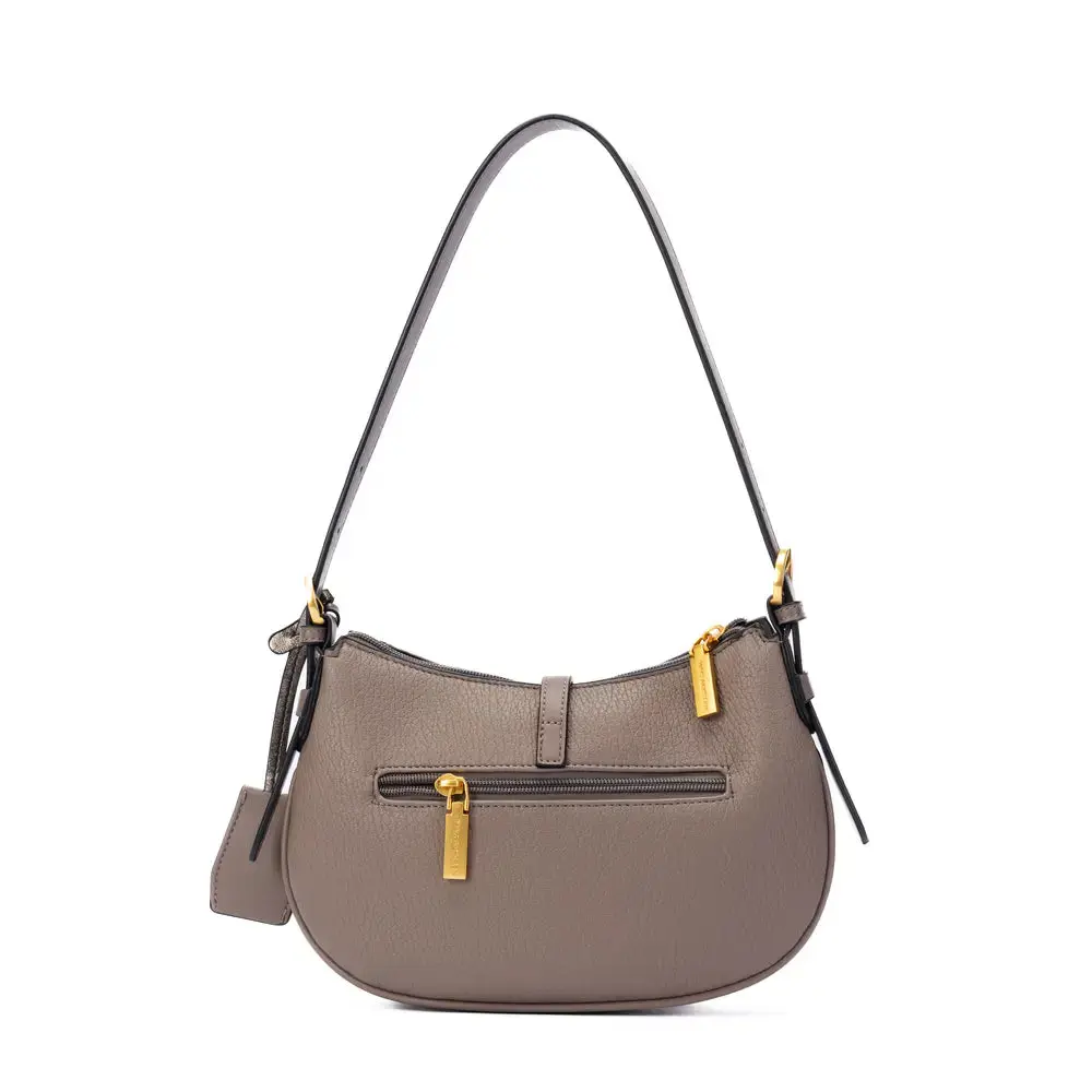 Ce modèle est livré avec deux anses interchangeables : une anse courte amovible pour le porter à la main ou à l’épaule de façon chic, et une bandoulière réglable pour un porté croisé pratique. Disponible en cognac et en gris taupe, il se fond facilement dans votre dressing automne/hiver comme au printemps.