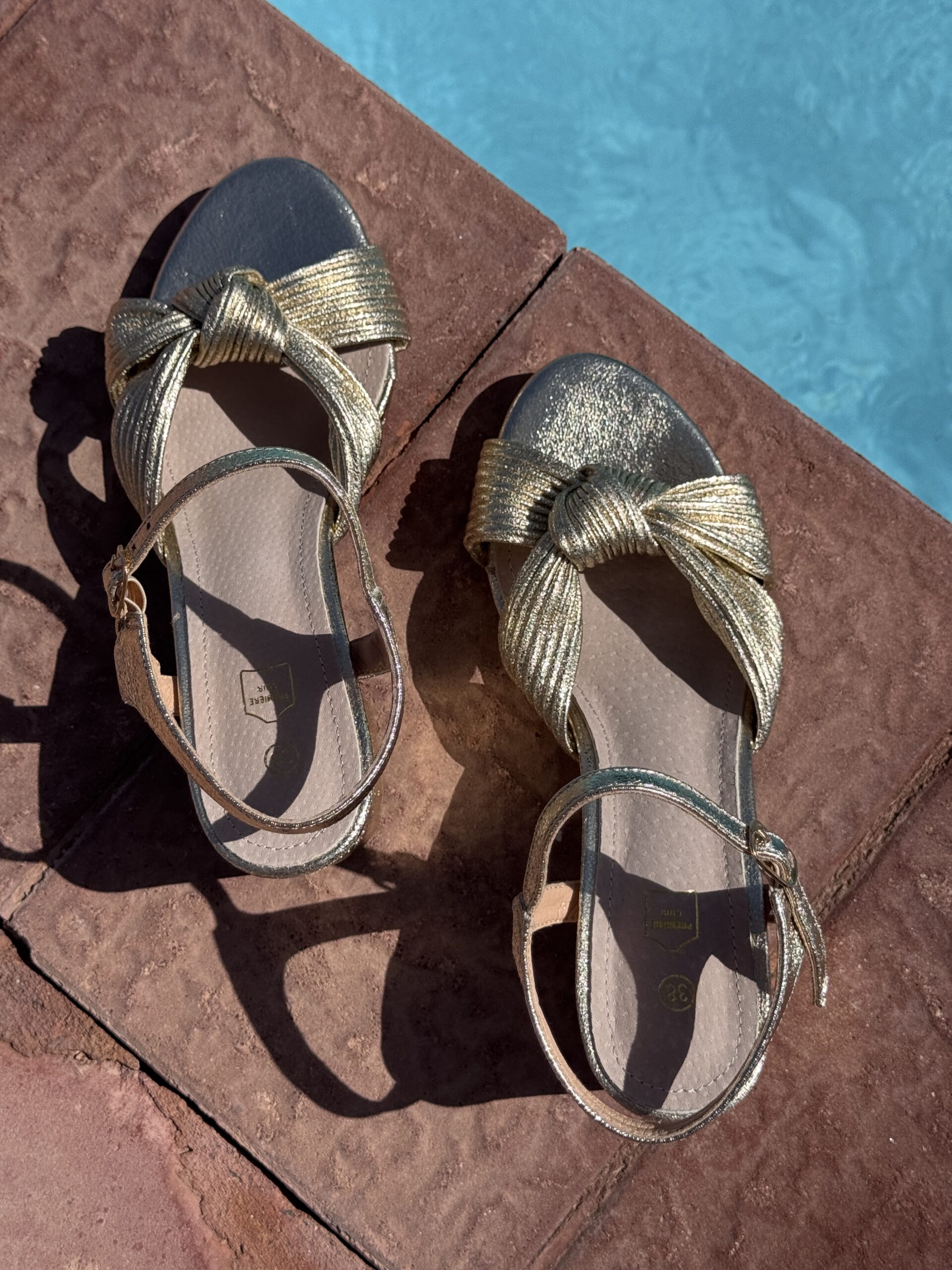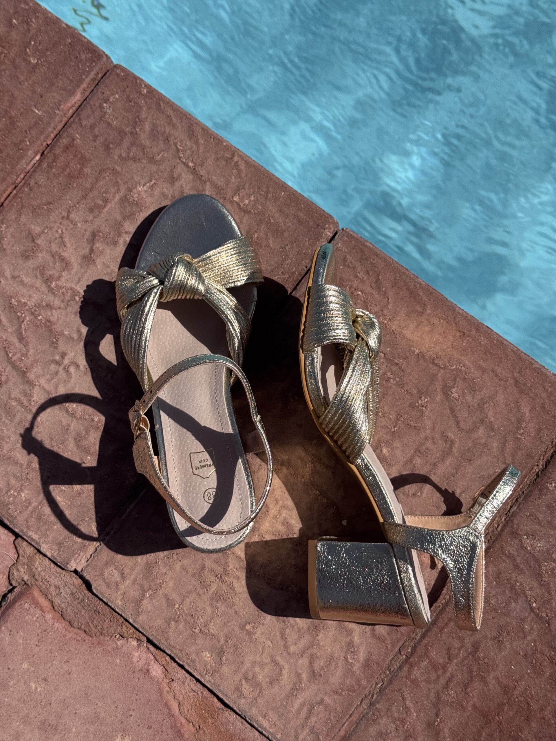 Sandales ILONA Sandales à talon Couleur : or Noeud à l’avant Bride à la cheville Confortable Talon : 6,5 cm Disponible du 36 au 41