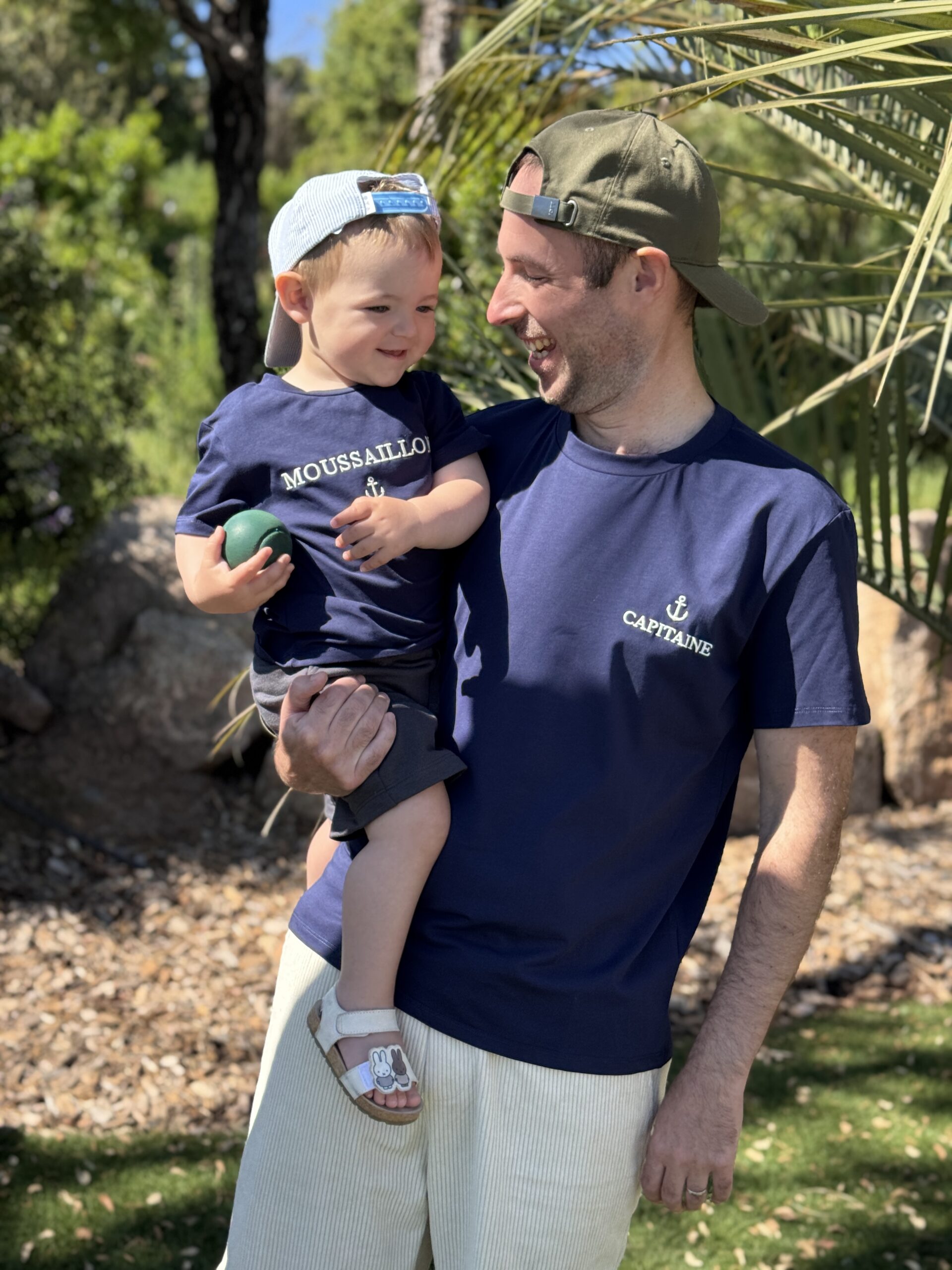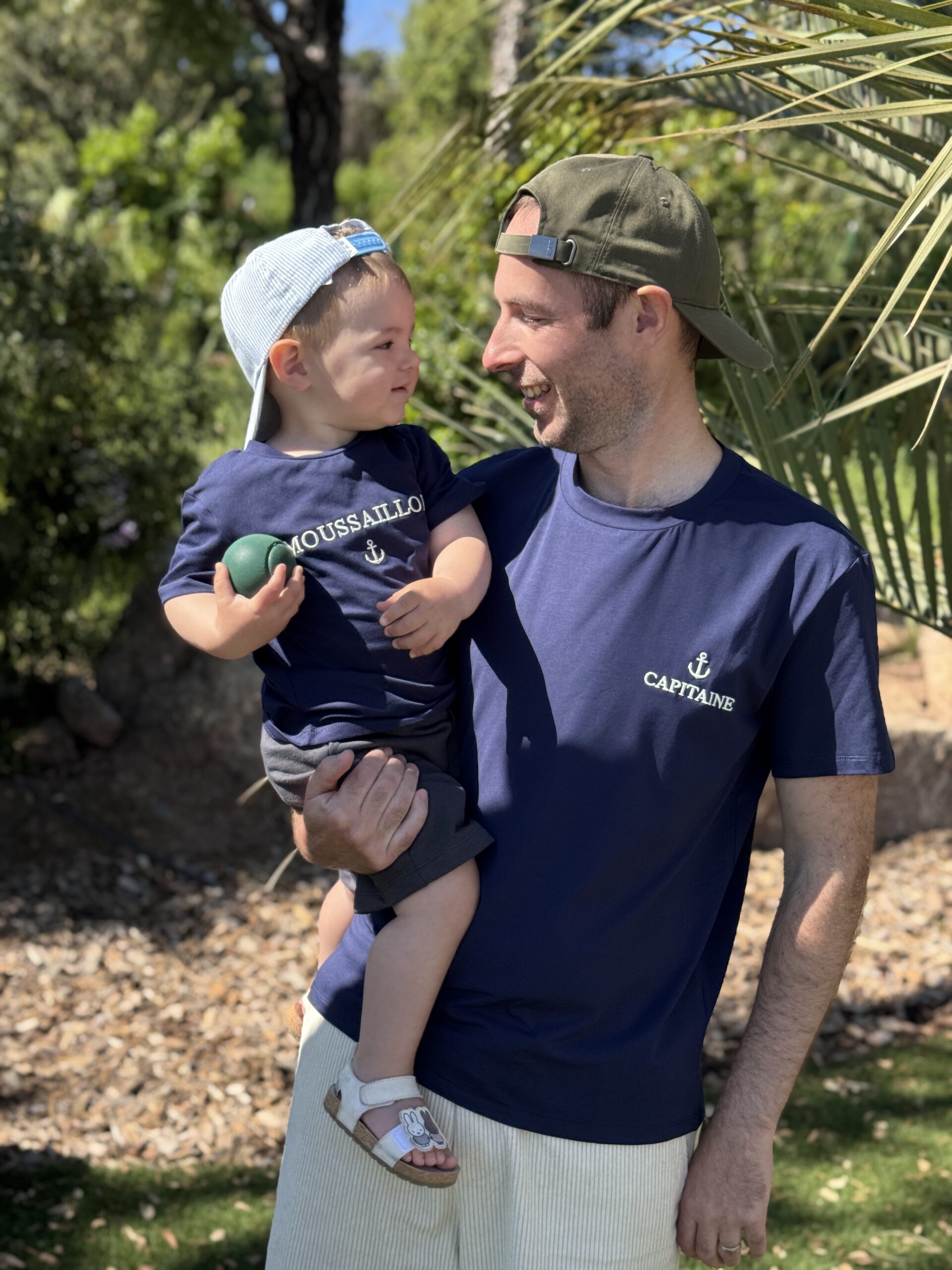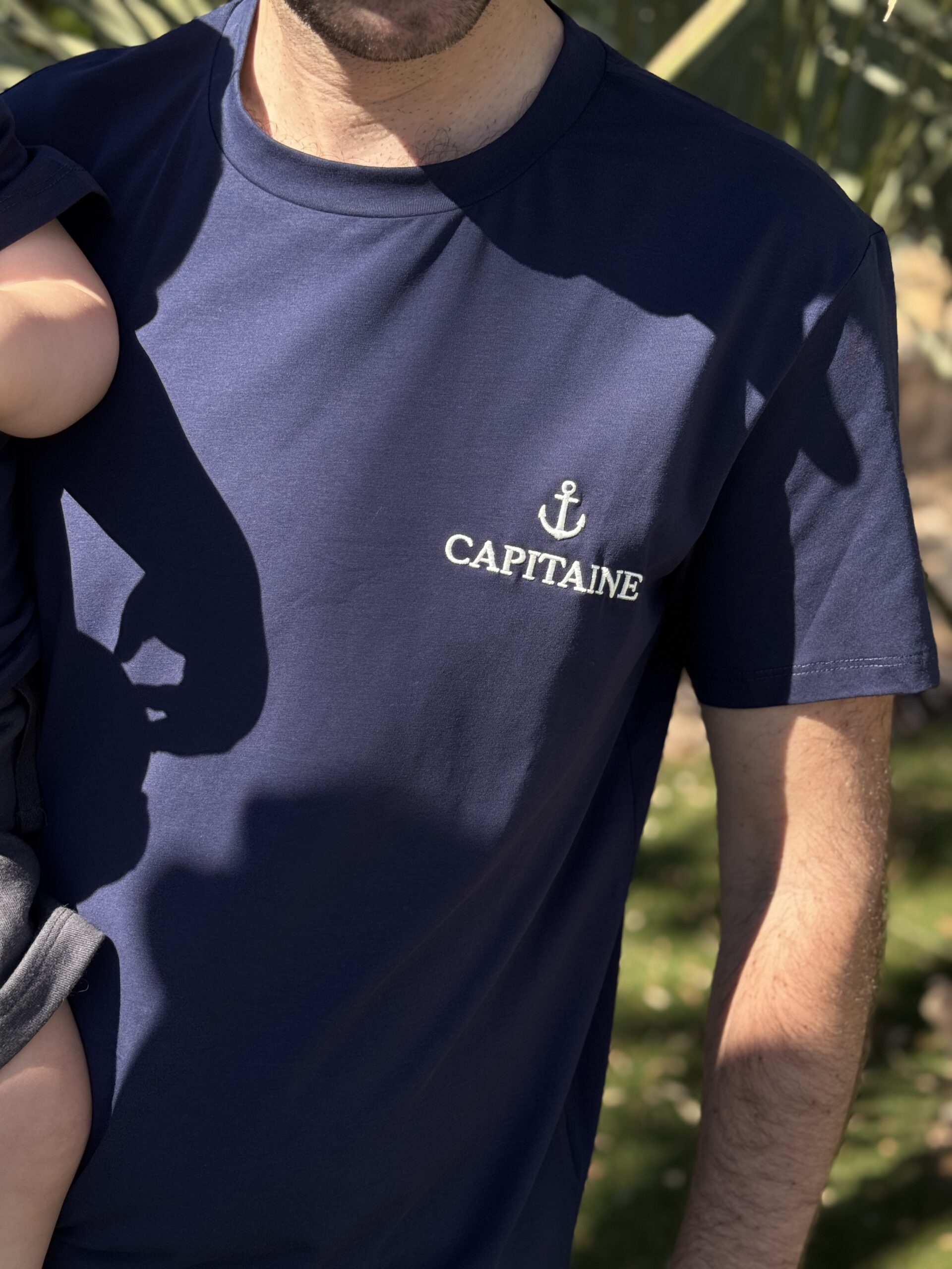T-shirt CAPITAINE Bleu marine HOMME T-shirt Coloris : marine & blanc Col rond Inscription » Capitaine » avec une ancre brodée Tailles : S/M/L/XL/2XL Longueurs = S : 67 cm, M: 68 cm, L : 69 cm et XL : 70 cm, 2XL : 71 cm Largeurs sous aisselles = S : 51 cm, M: 53 cm, L : 55 cm, XL : 57 cm, 2XL : 59 cm Composition : 95% coton, 5% spandex Le modèle porte du S et mesure 1m74