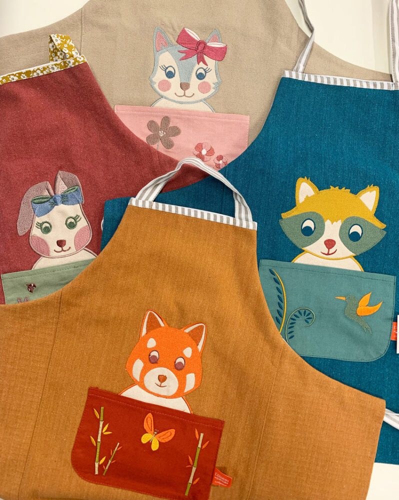 Décoré d’un adorable compagnon espiègle, ce tablier personnalisable pour enfant est idéal pour tout type d’activité ! De la cuisine à la peinture, sa poche centrale permettra à l’enfant de garder tous les accessoires indispensables à portée de main. Confectionné dans des tissus de qualité, ce tablier personnalisable s’adapte à tous les âges grâce à son lien ajustable à nouer dans le dos. Durable, il convient ainsi aux enfants de 2 ans jusqu’à 6 ans au moins. Il n’y a plus qu’à laisser place à la créativité des petites mains.
